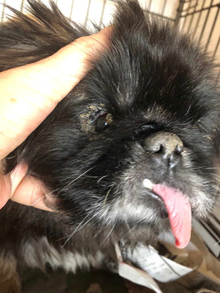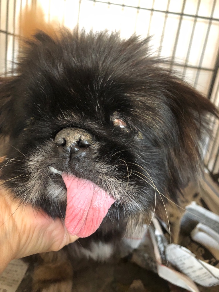 失明している ペキニーズの おばあちゃん。