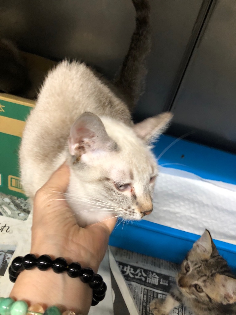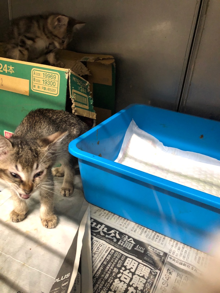 痩せた お母さん猫と 真菌の子猫達です、