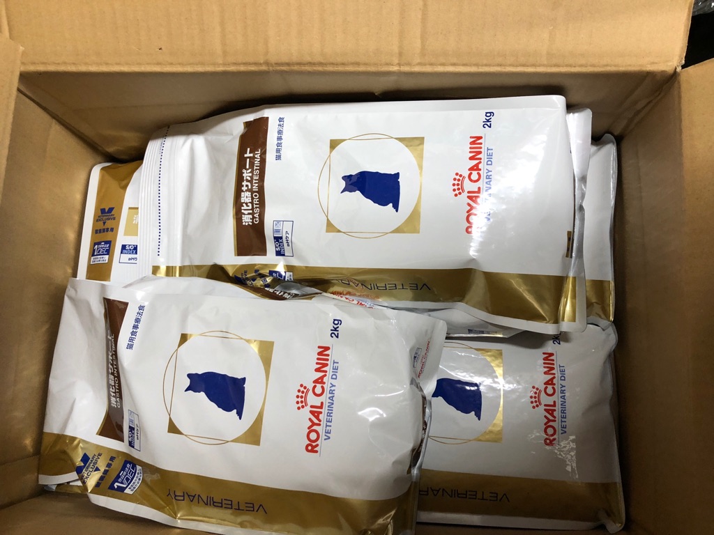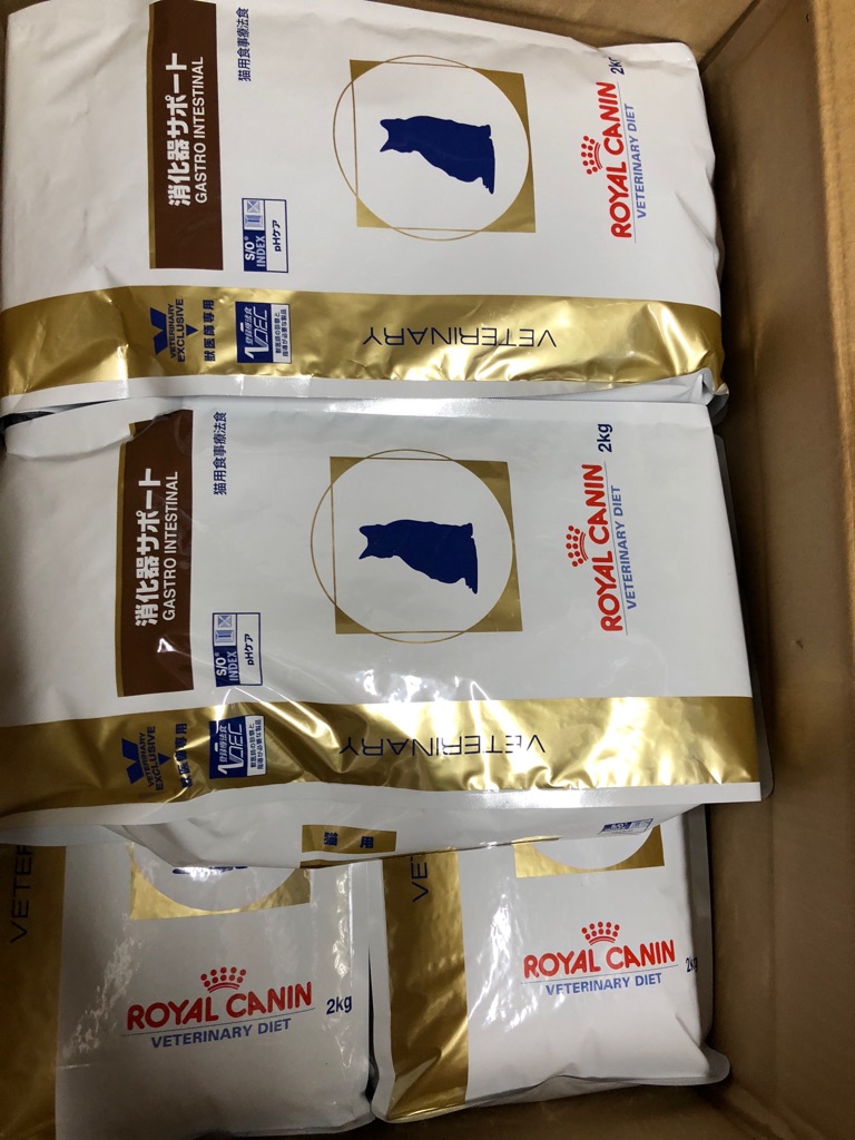 この 濃い茶色の 消化器サポートは お腹を壊している子に 良く効いています。