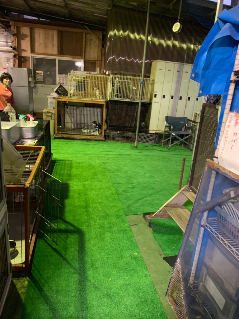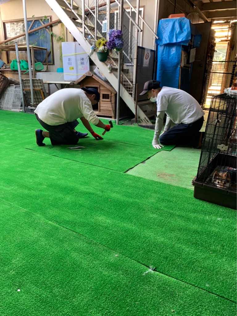 犬達が 毎日遊ぶところなので 定期的に替えていますが  高いので スタッフさんがネットで注文して みんなで敷き替えをしてくれました。