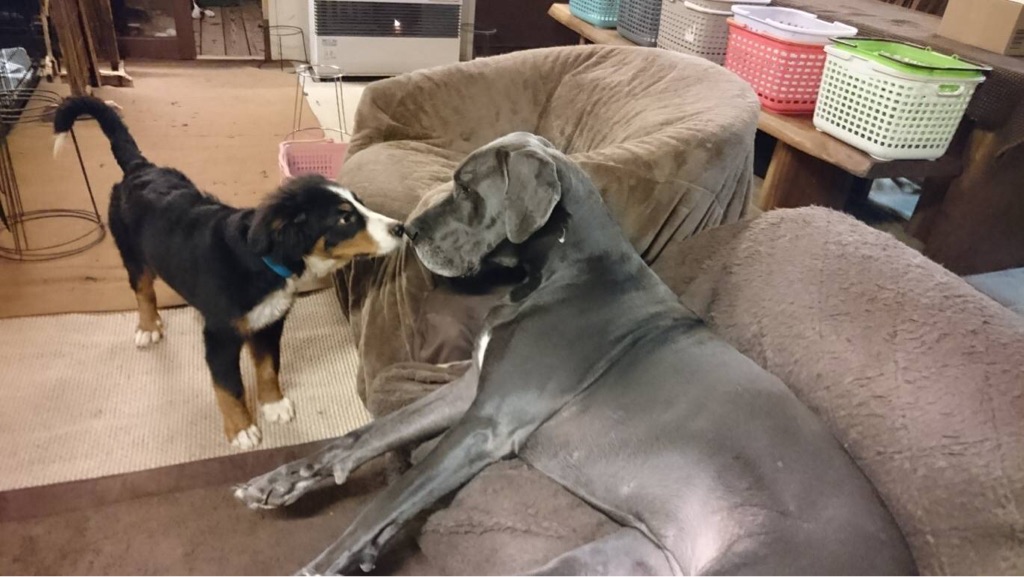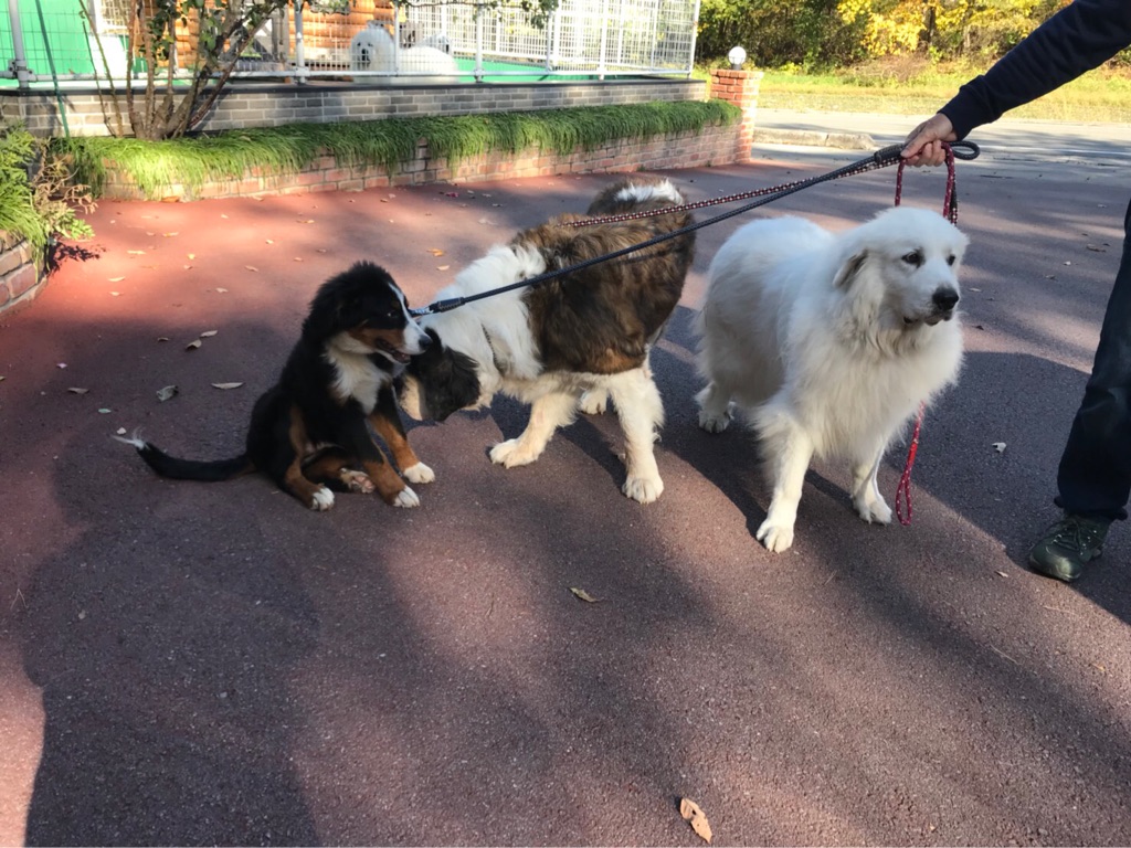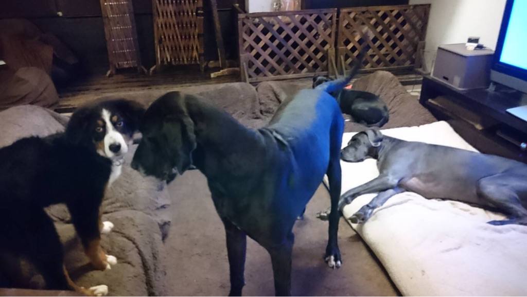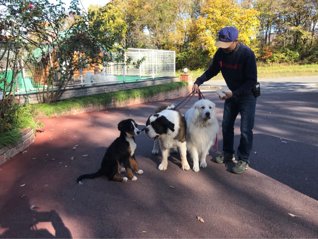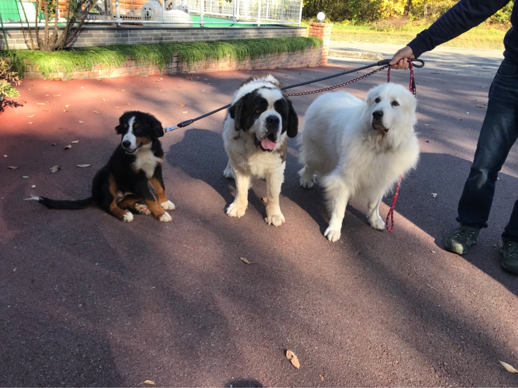 大きなグレートデンが 沢山いても 物怖じせずに挨拶して行きます。