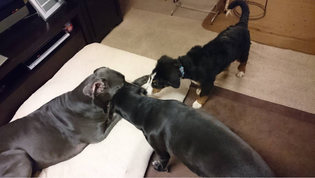 こちらにも  ニューファンと、チベタン マスチフさんが居ます、