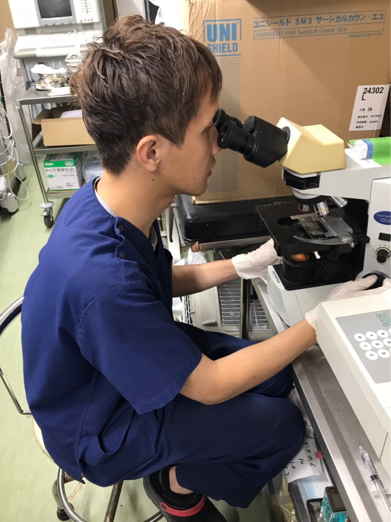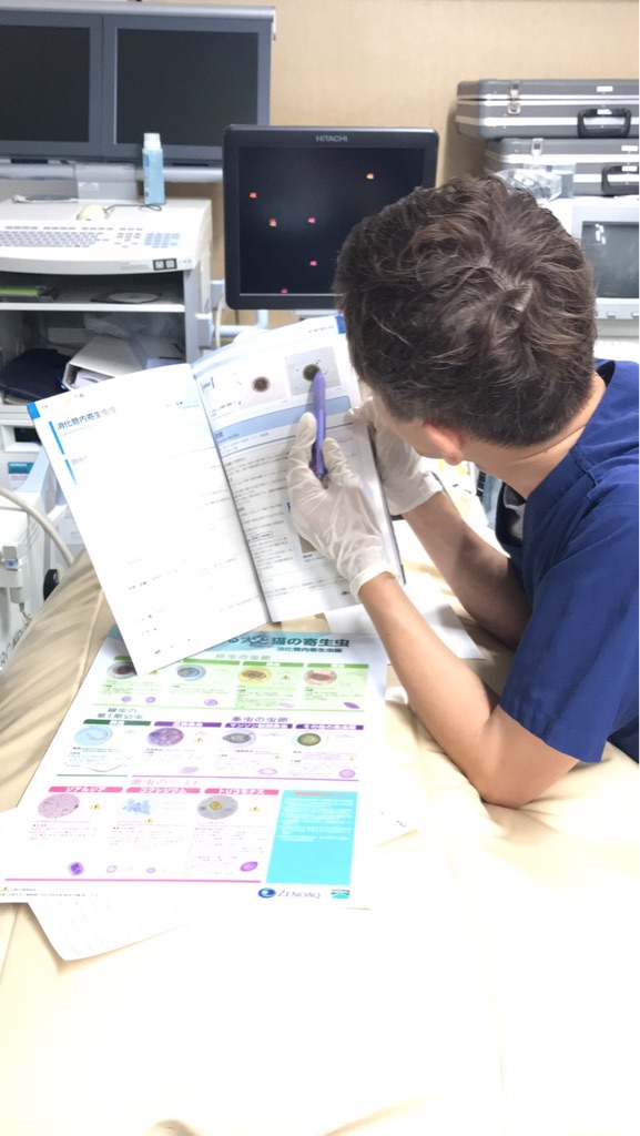 数が多いと、先生だけでは 間に合わない時も有りますので スタッフさん達にも検便の方法などを先生から 教えて頂いています、