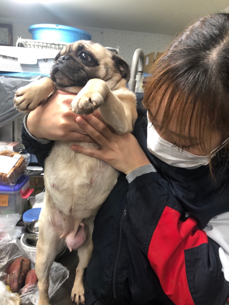 このパグちゃんも お腹に 乳腺腫瘍が有りました、引き取らなければ このまま酷くなってしまったと思うと、今日出会えて良かったです。