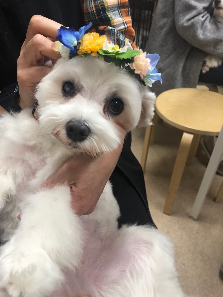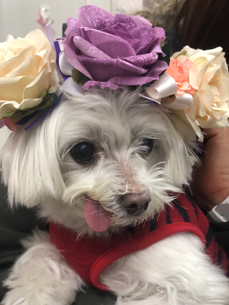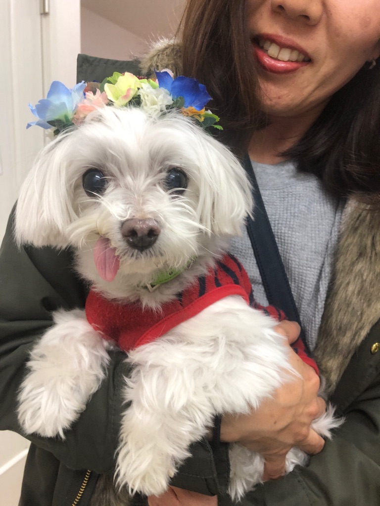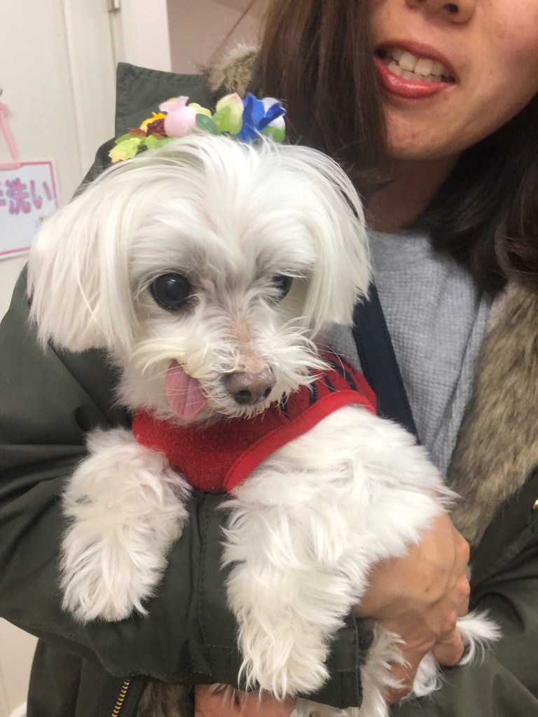 下はマルチーズのくるみちゃん、右目の中が白く傷ついています、