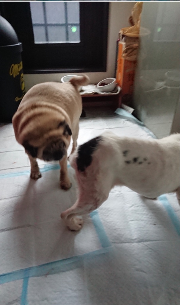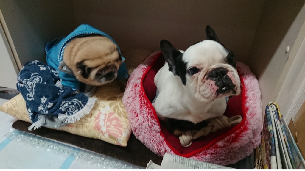先住犬達は 14. 15歳の子達もいて  皆んな老犬です、眼球萎縮や シンザツや 結石の治療をしています、