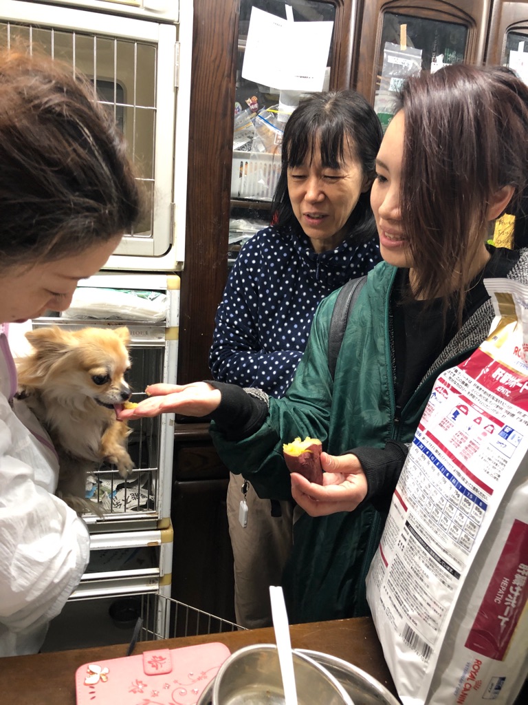 深夜食  痩せている子 手術後の子にも お芋を蒸して上げています、