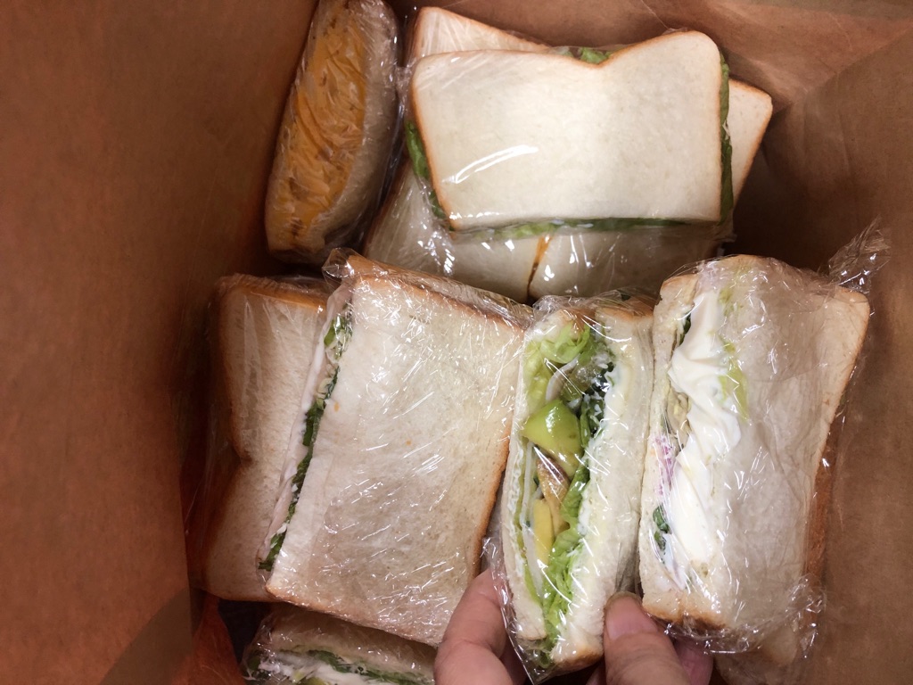 下は  特製の タクアンサンド、野菜サンド、卵サンドにタクアンが 刻んで入れて有ります