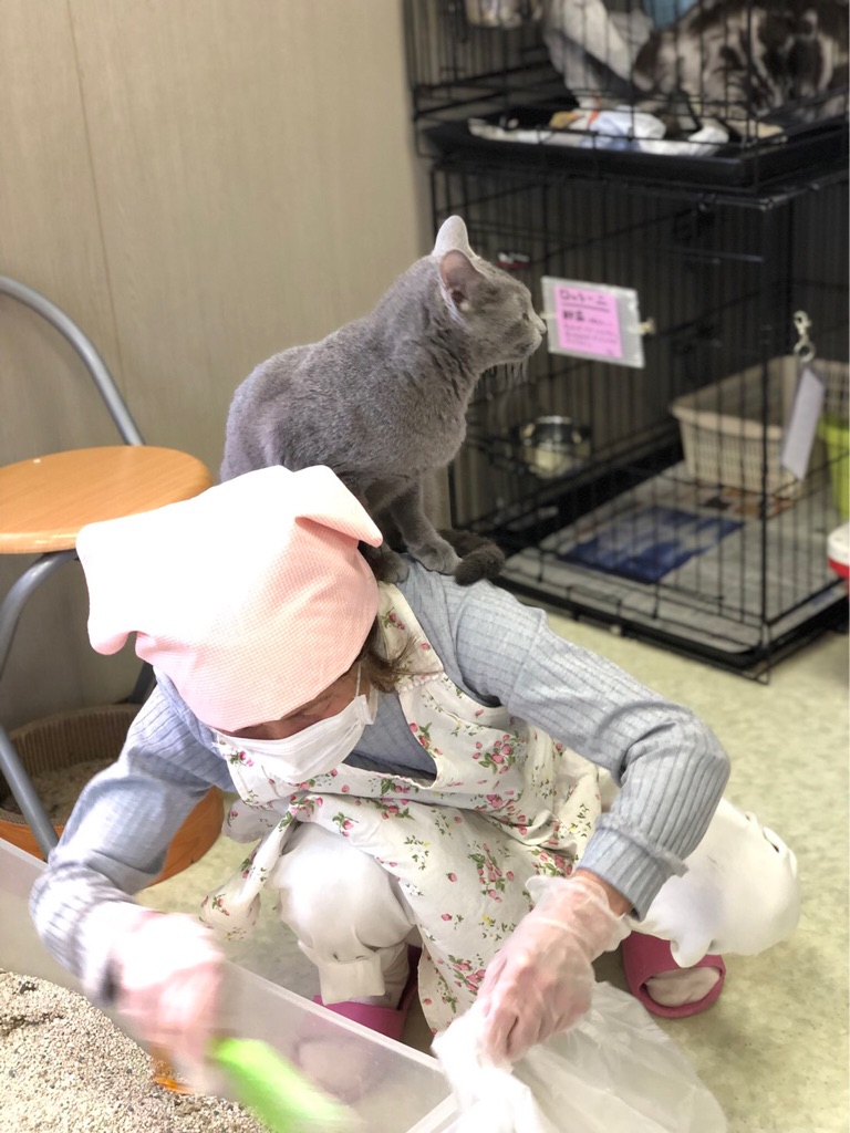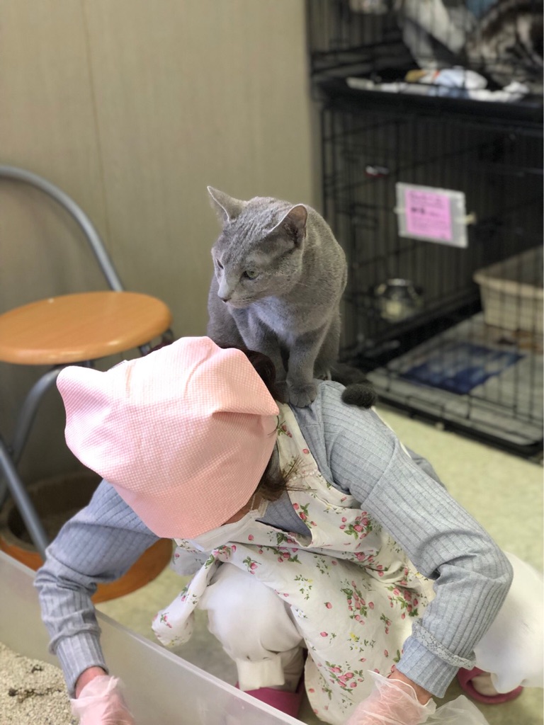 ユキちゃんの お母さんは 猫ちゃんに好かれていて いつも肩に猫ちゃんが🐱、、、