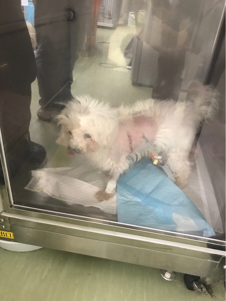 老犬の マルチーズは  片肺に 腫瘍があり、
