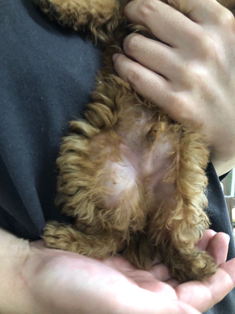 鼠径ヘルニアの プードルの子犬です、