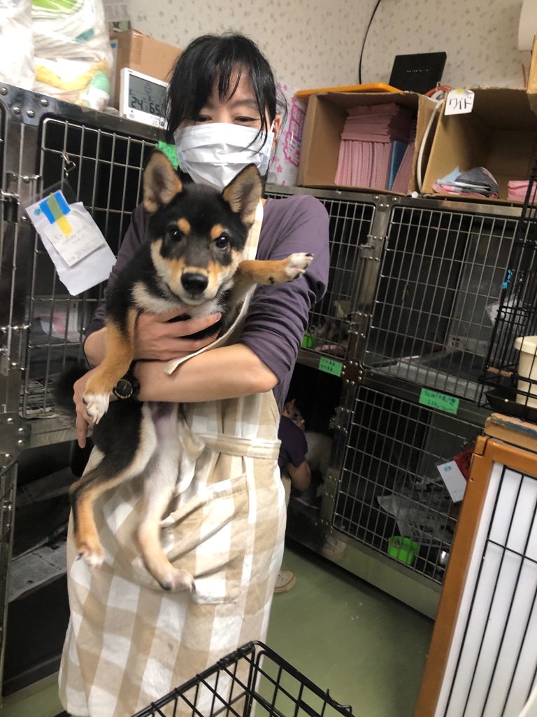 黒柴のあんず姫  食欲が無く 強制給餌と点滴をして居ます、血液検査中。