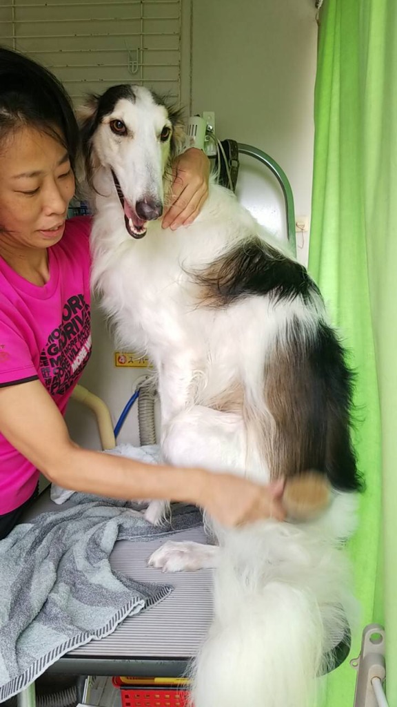 今日は 人手があったので フォスターもチマちゃんに シャンプーをしてもらいました、😊👌