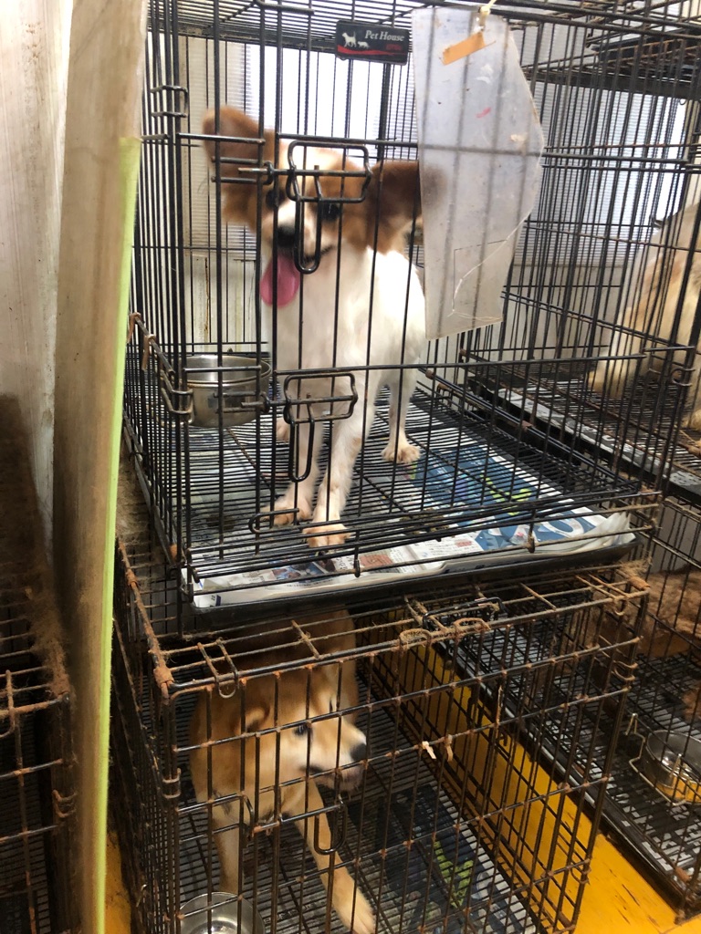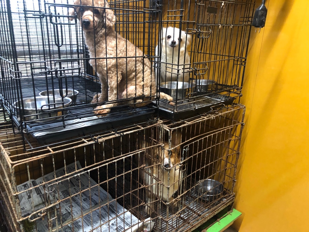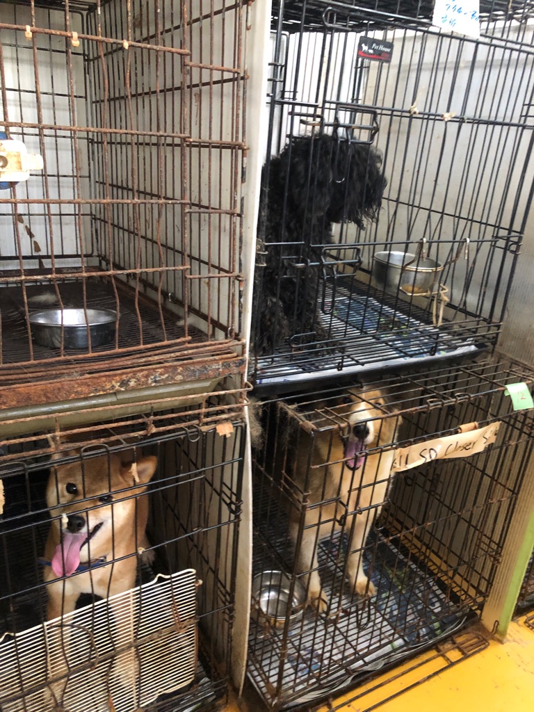 現地は 屋根が破損して雨漏りがひどく、犬達はそこにはいられません。