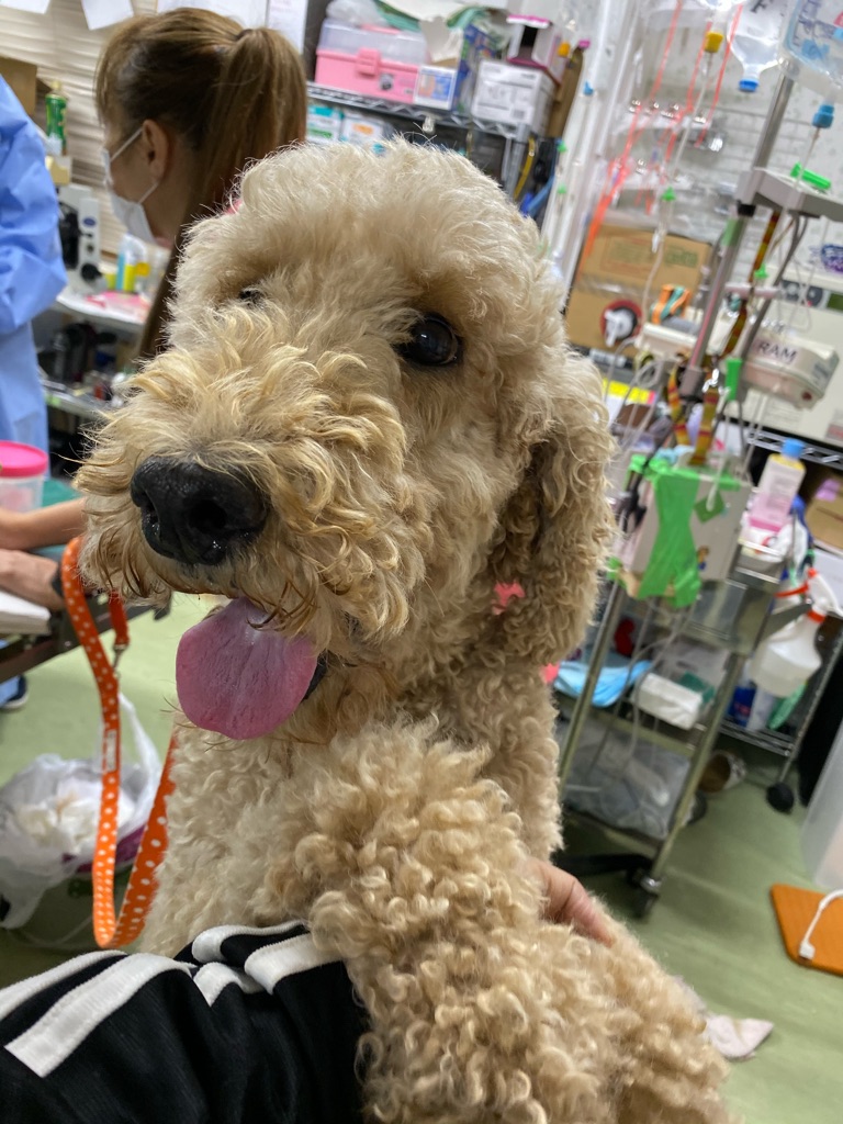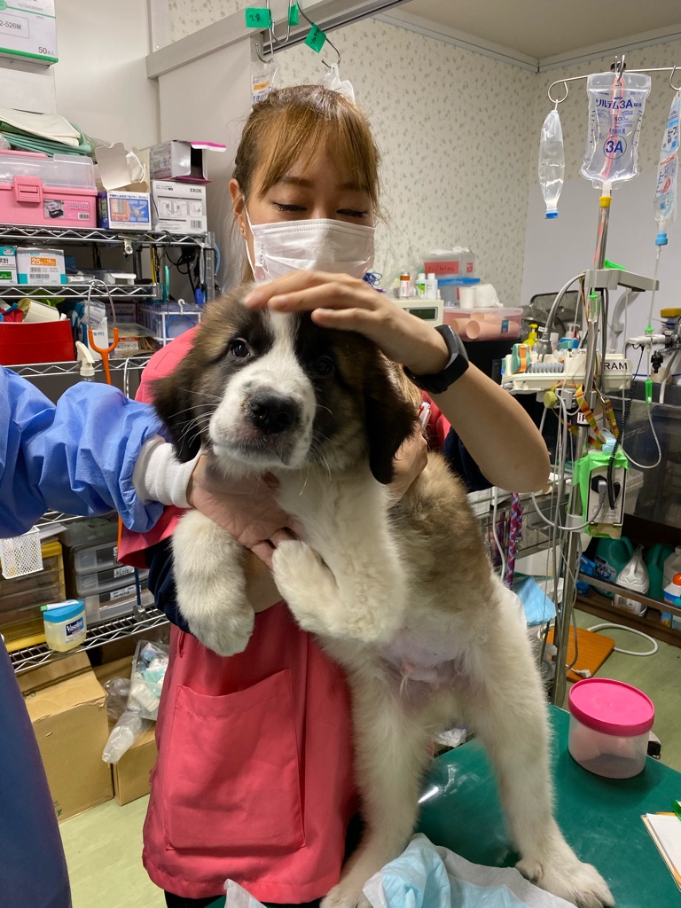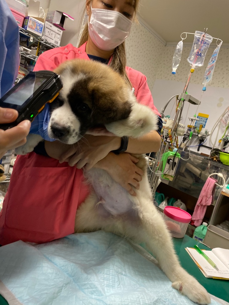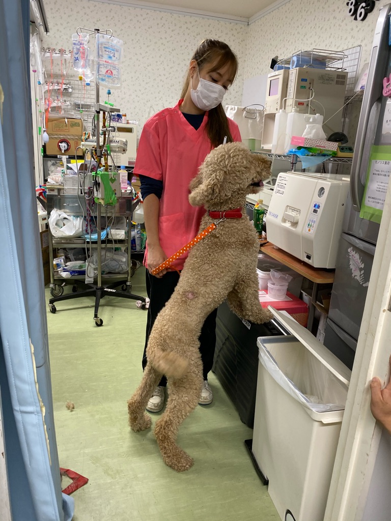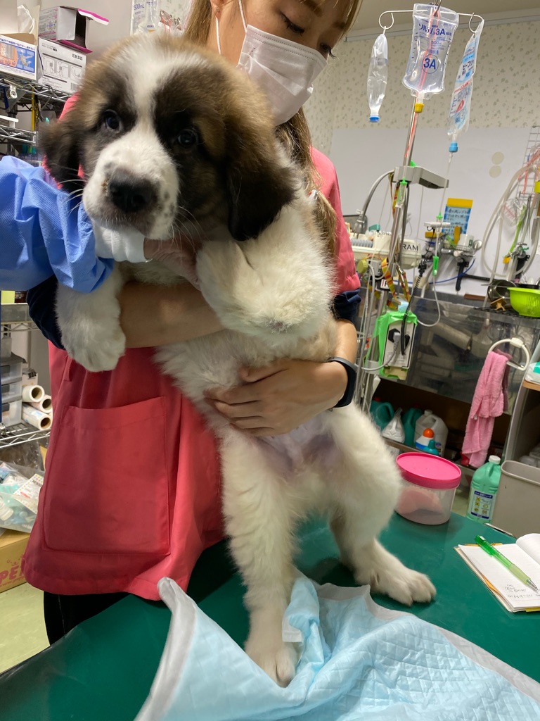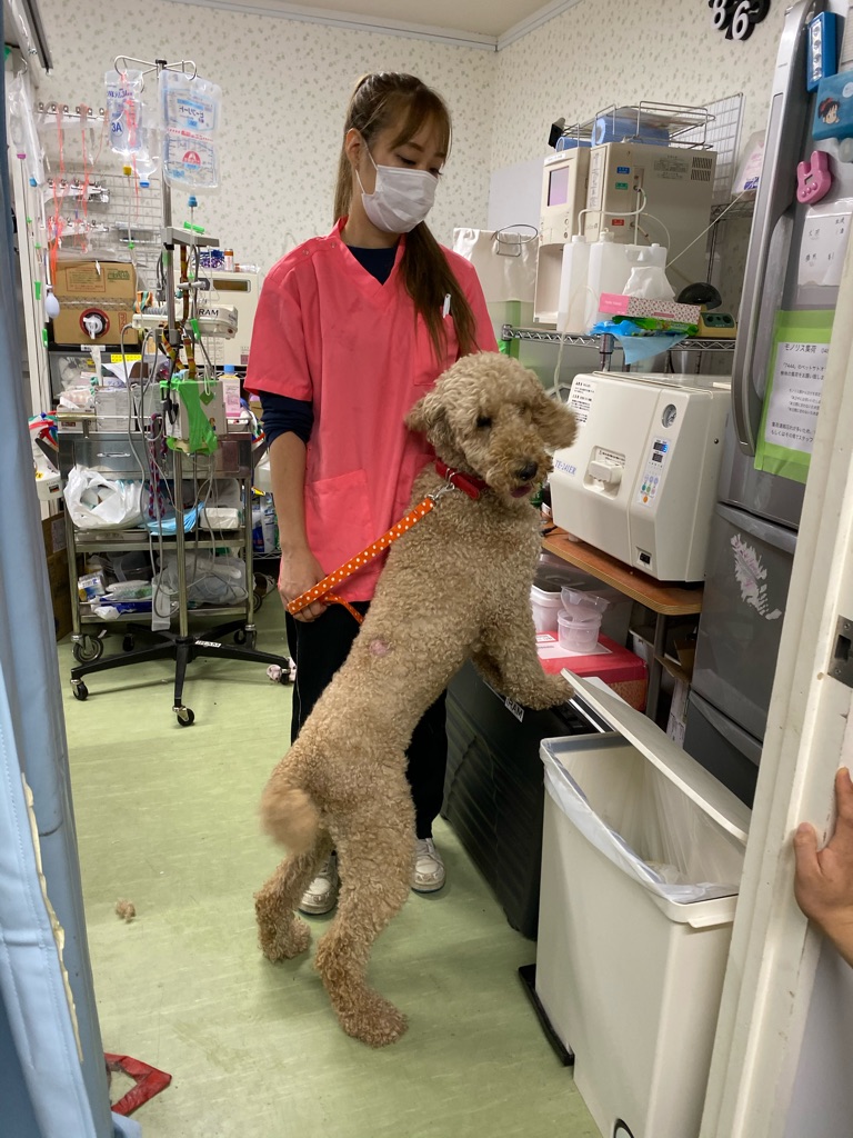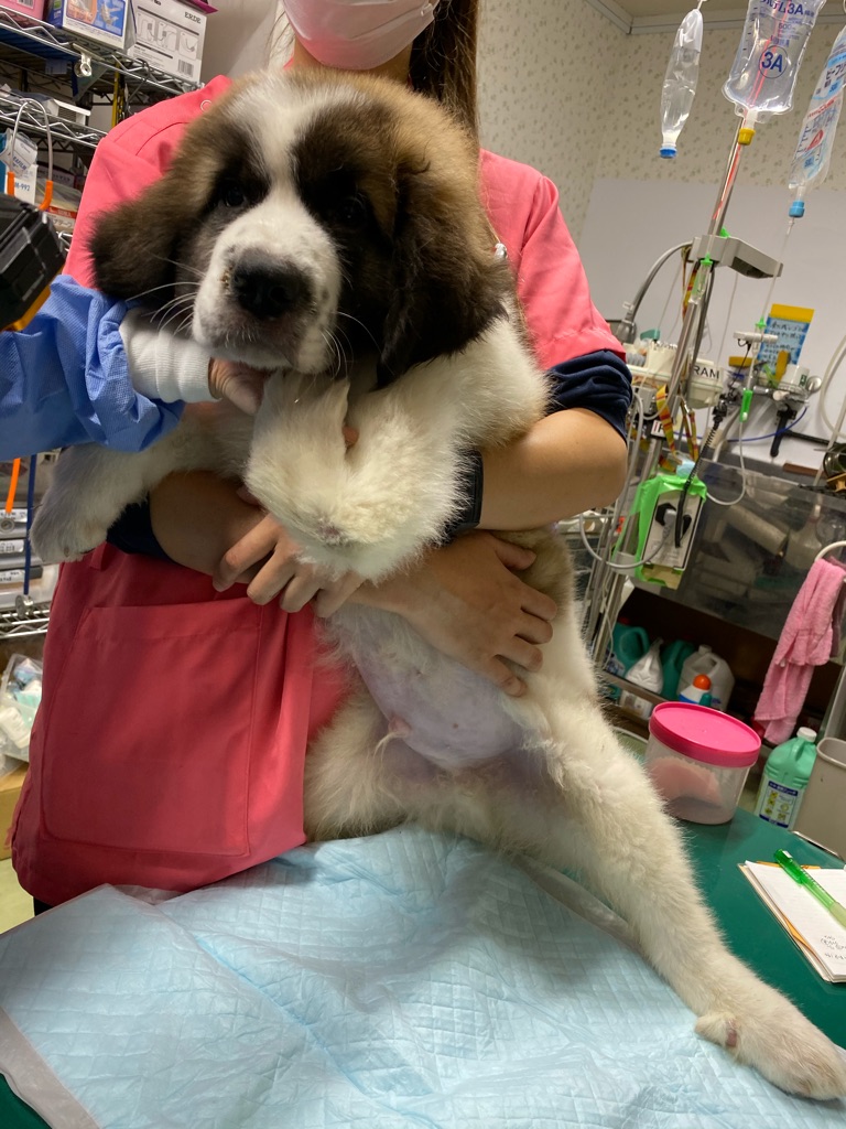 やっと包帯が取れたセレナちゃんですがどこかに引っかかって背中にちょっと傷がつきました。消毒とお薬が出ました。