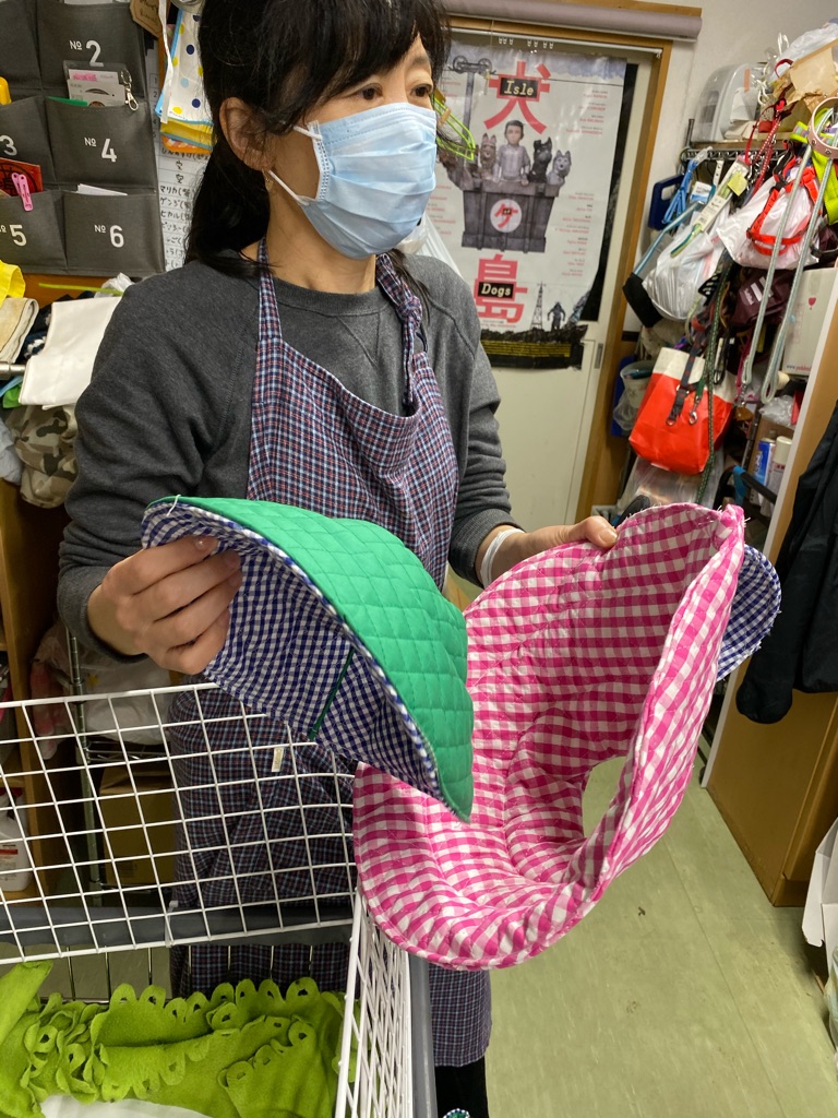 そして 布カラーが結構汚れや 噛まれてなくなるので スタッフさんもご主人と一緒に沢山作ってくれました、