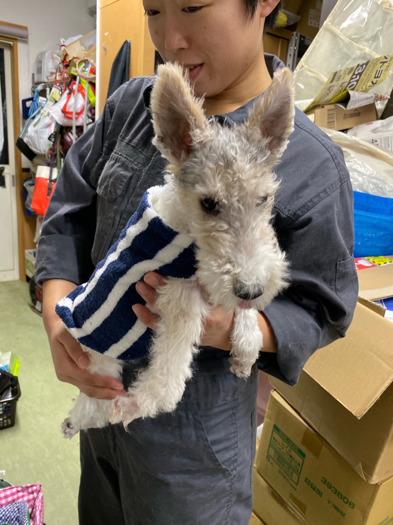 スタッフさんが 寝たきりのジョーに着せやすい洋服を縫ってくださいました、😆💓👌