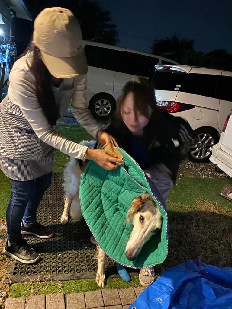 スタッフさんが作ってくれたカラーをつけてみたのですが、、、中々暴れて嫌がります💦