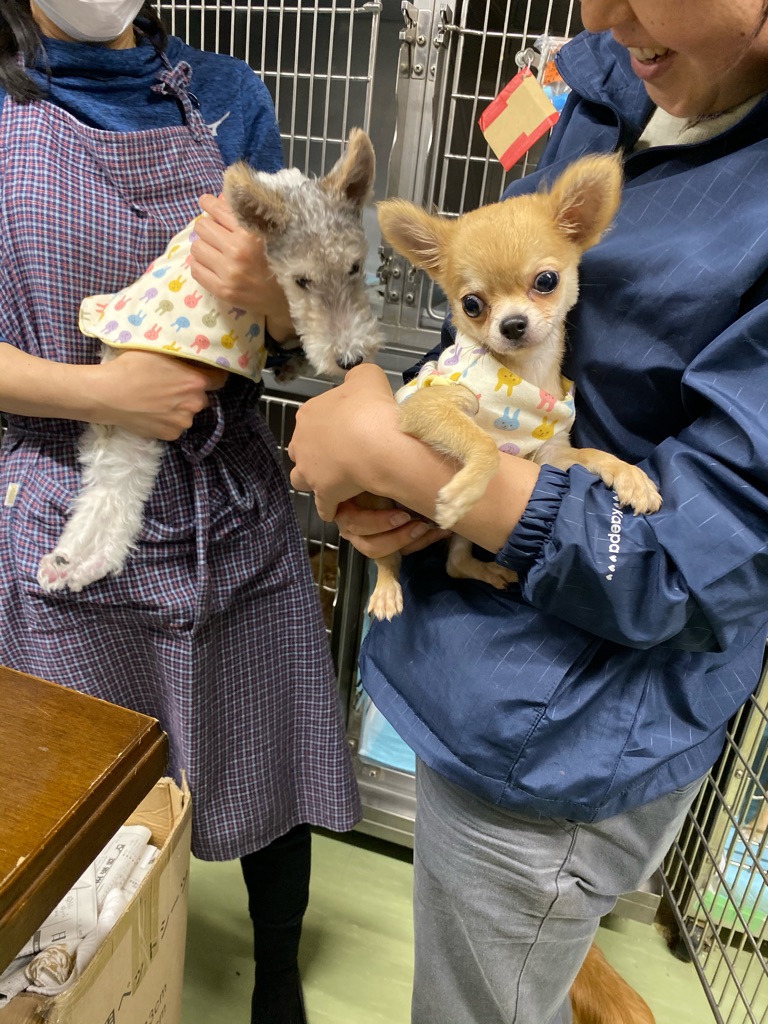 今日も、ママさんがジョーやフルフルに 可愛い洋服を作って来てくれました。😆💓