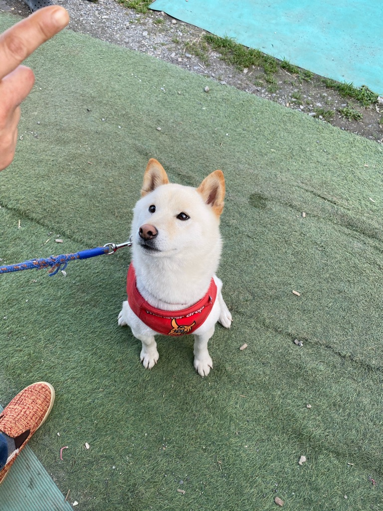 ちゃんと お座り、待てが出来るようになりました。
