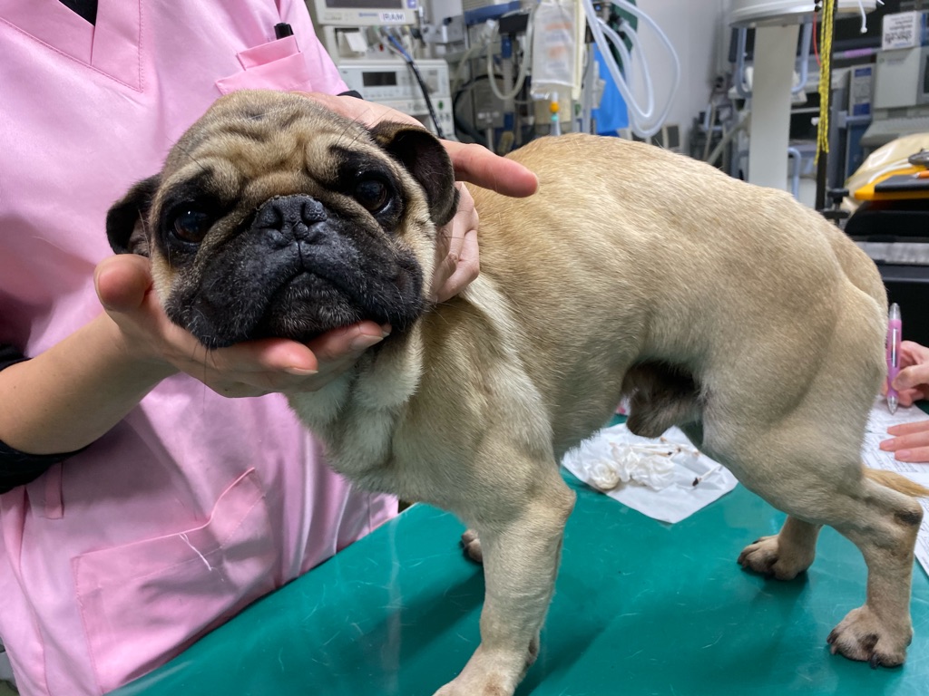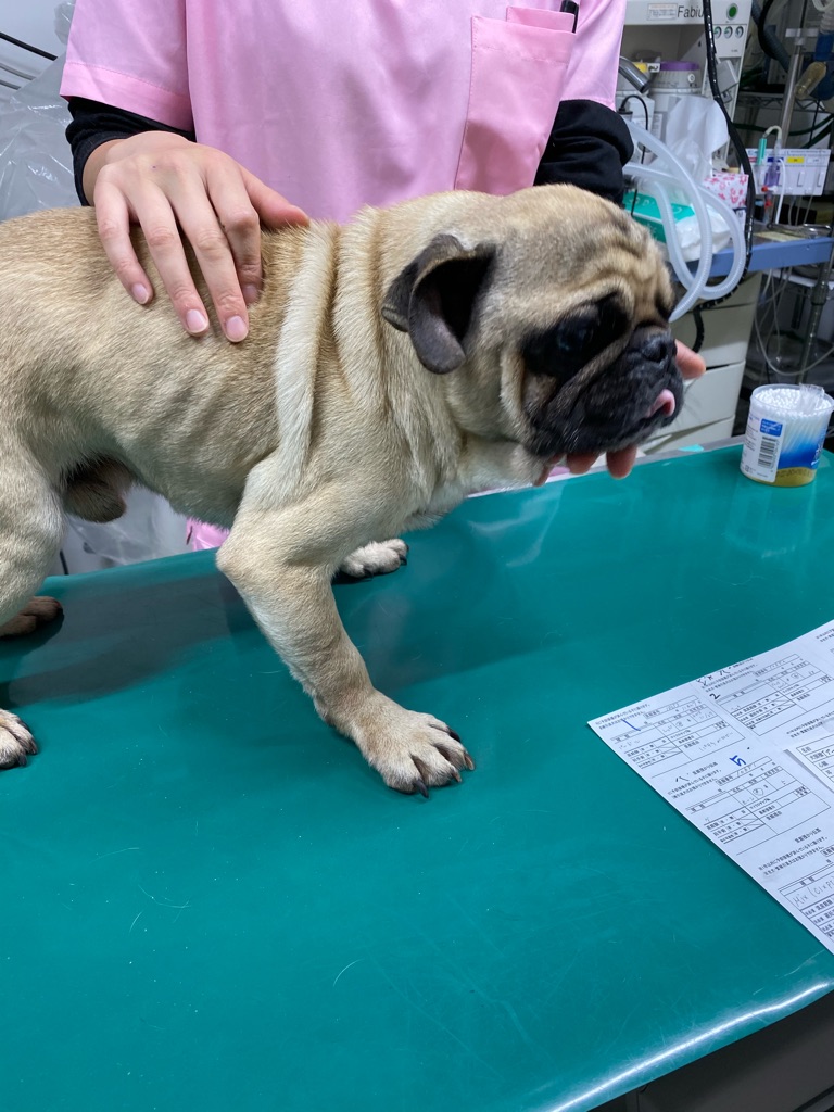 パグはガリガリ あばらが見えて居ます、