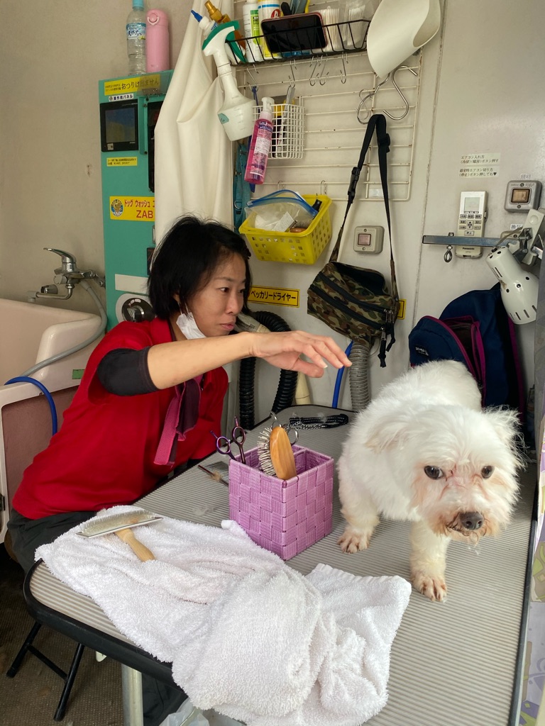 今日もスタッフさん達が シャンプートリミングをしてくれます。