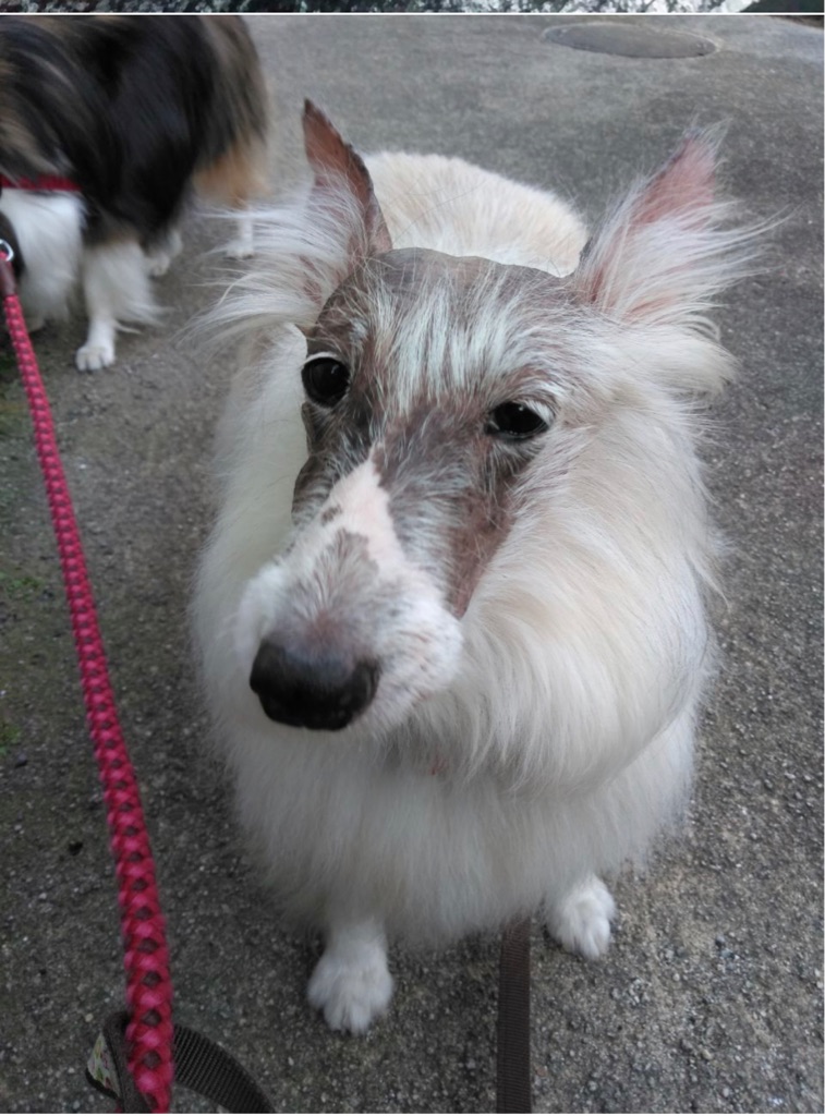 いつか忘れた頃に生えてくるかもしれないし、生えたらもっと可愛くなるだけですし、何犬ですか?って聞かれますが、私には最初からシェルティにしか見えてないので😍