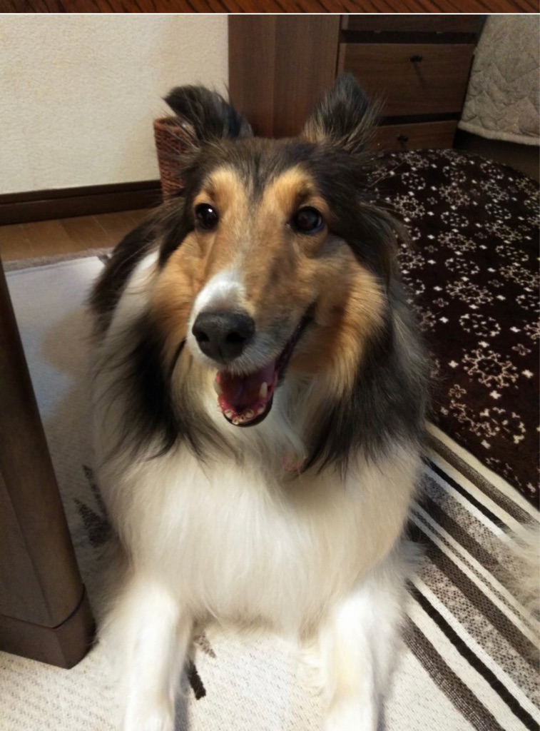 シェルティ、てぃま(てぃーま)が我が家に来て今日で3年経ちました。