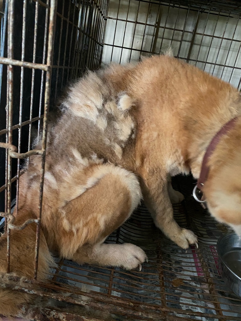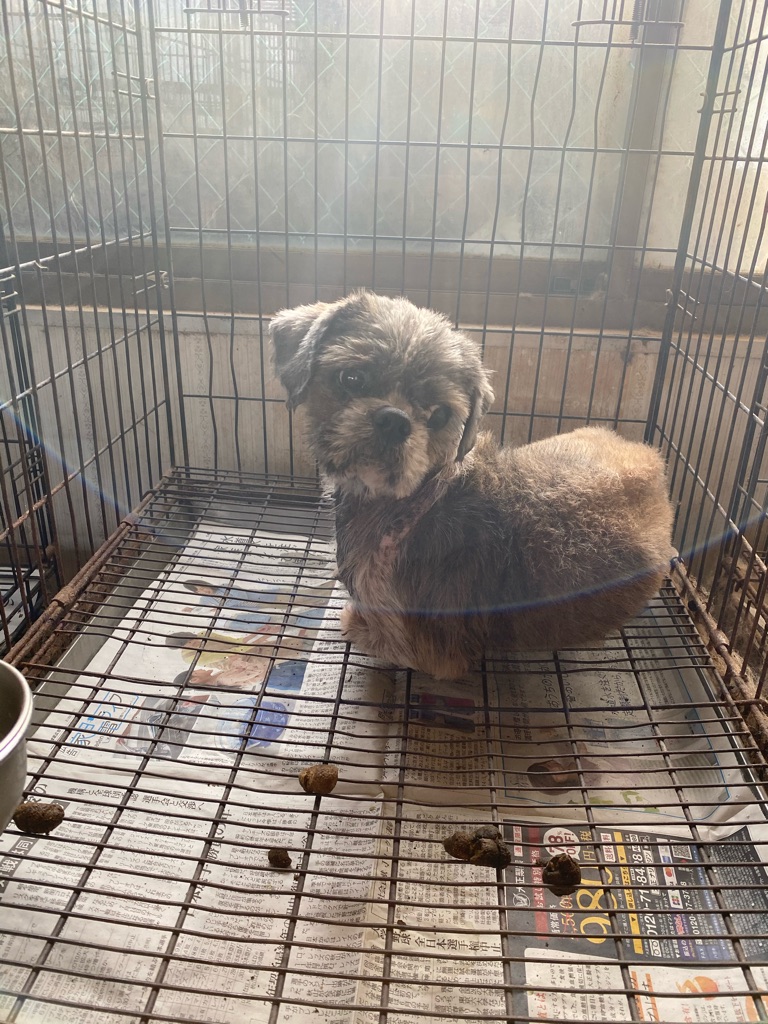 酷い皮膚の状態ですが 可愛いシーズーちゃんです、綺麗な光の中にいました。