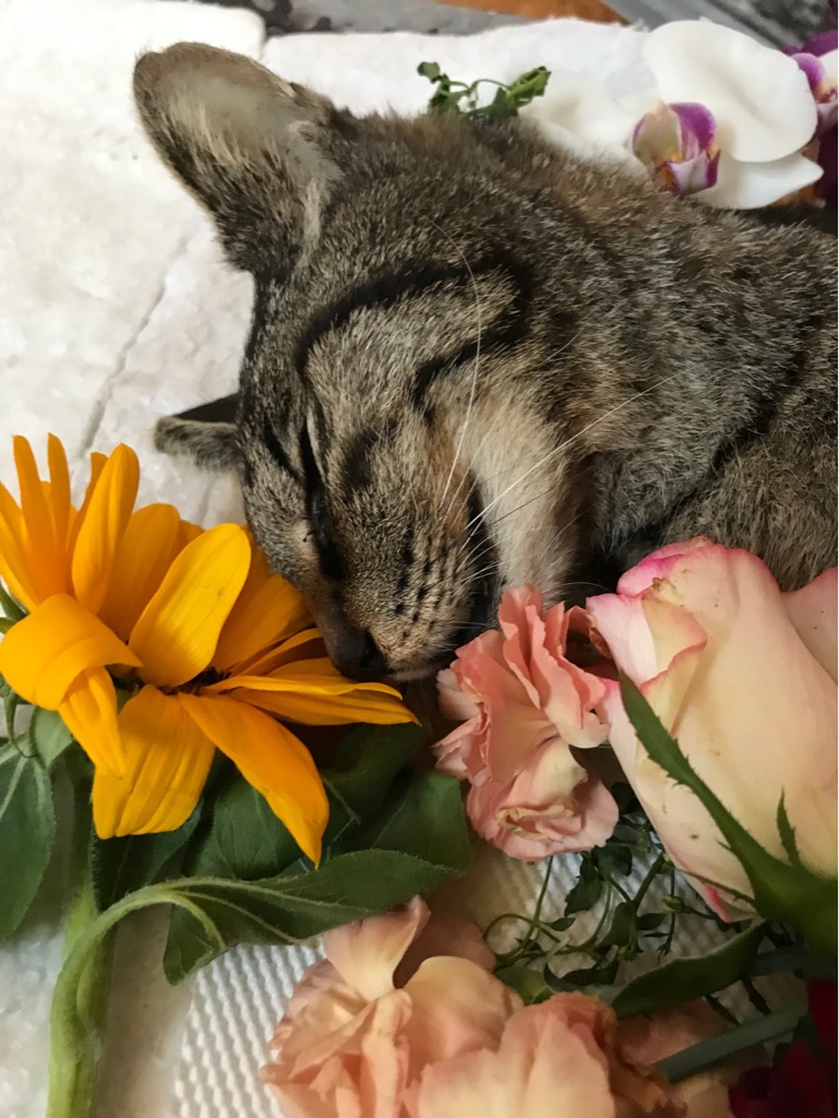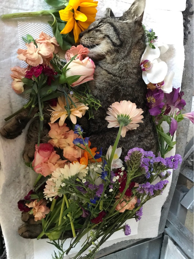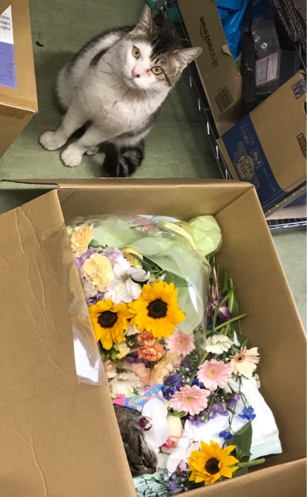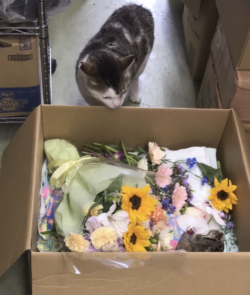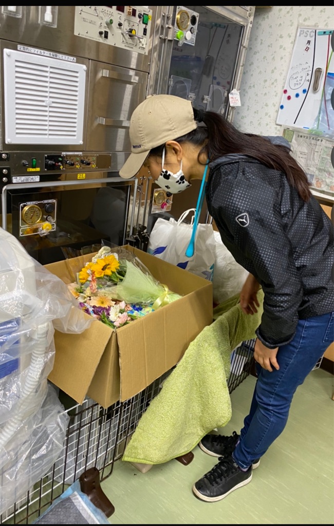 ケイ君は スタッフさんから沢山のお花をもらい、今日お空に帰りました。