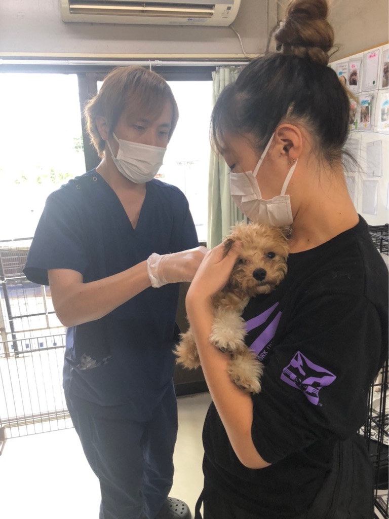 シェルターに来て長い子達も狂犬病を打ち直しです、