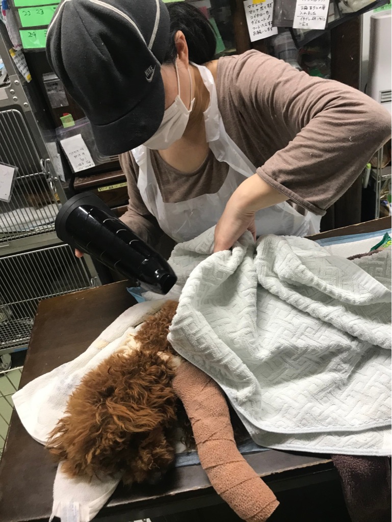 下は術後に 体温を上げる為ドライヤーで