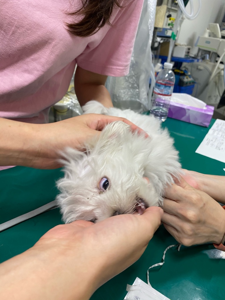 下のマルチーズは 水頭症です。