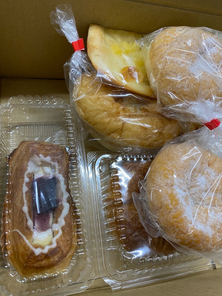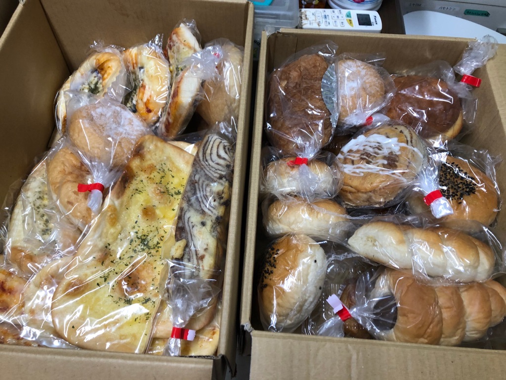 先週美味しいパンを差し入れて下さったご夫妻が また沢山のパンを差し入れて下さいました、また皆んなのランチに頂きました。😃🙏