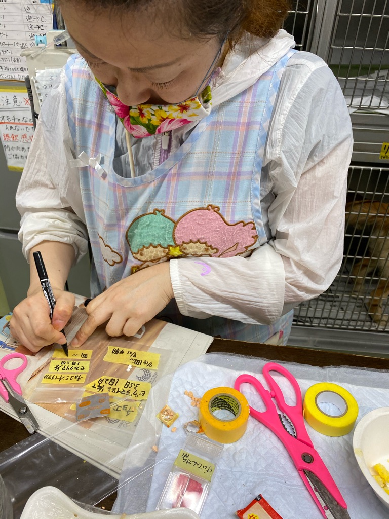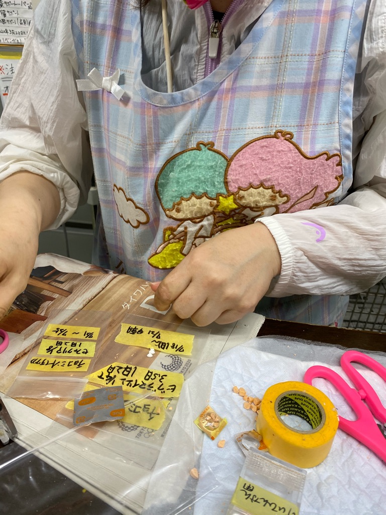 今夜も深夜1時半過ぎました、まだ薬の仕分けをしてくれています。