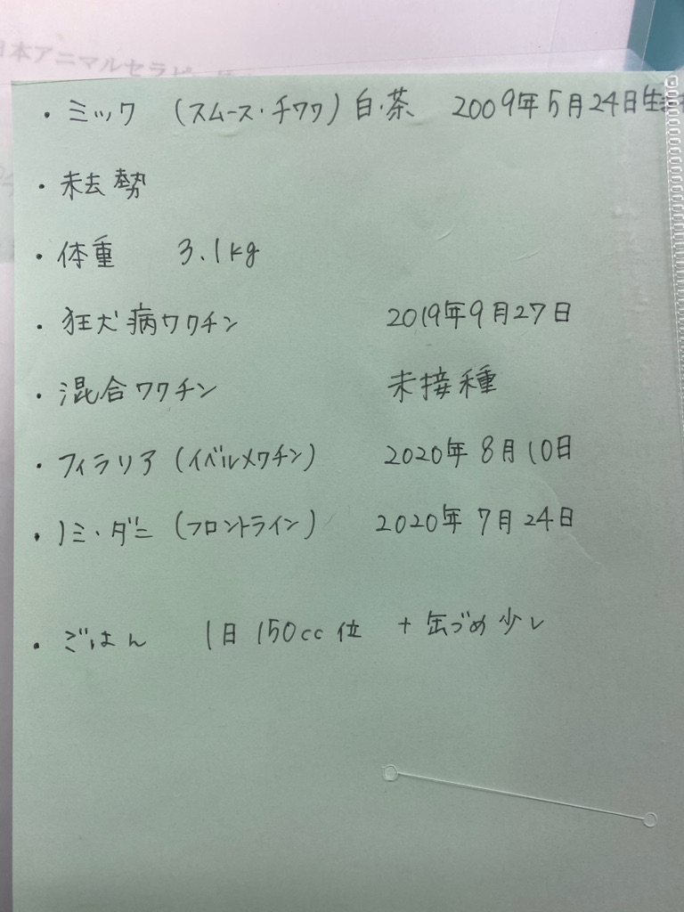 下はチワワ達の情報として貰ったメモ書きです