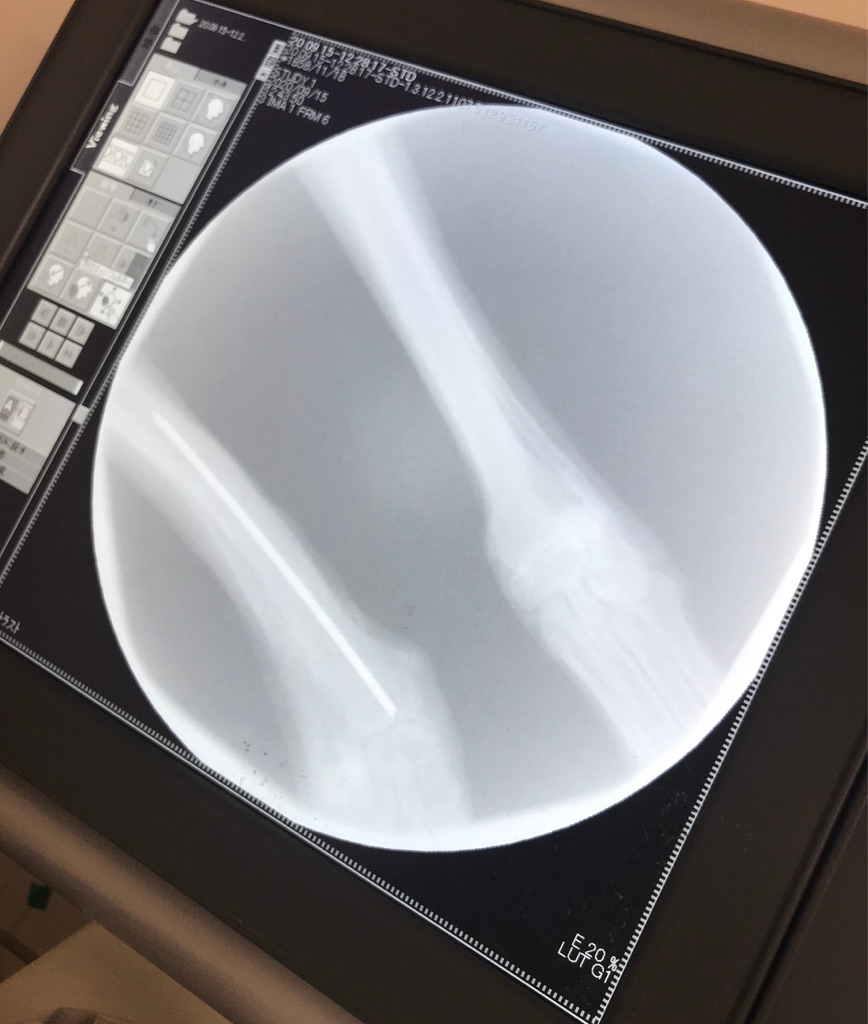 下は骨折箇所の診断です、見ただけで前足が骨折していたのが分かります。