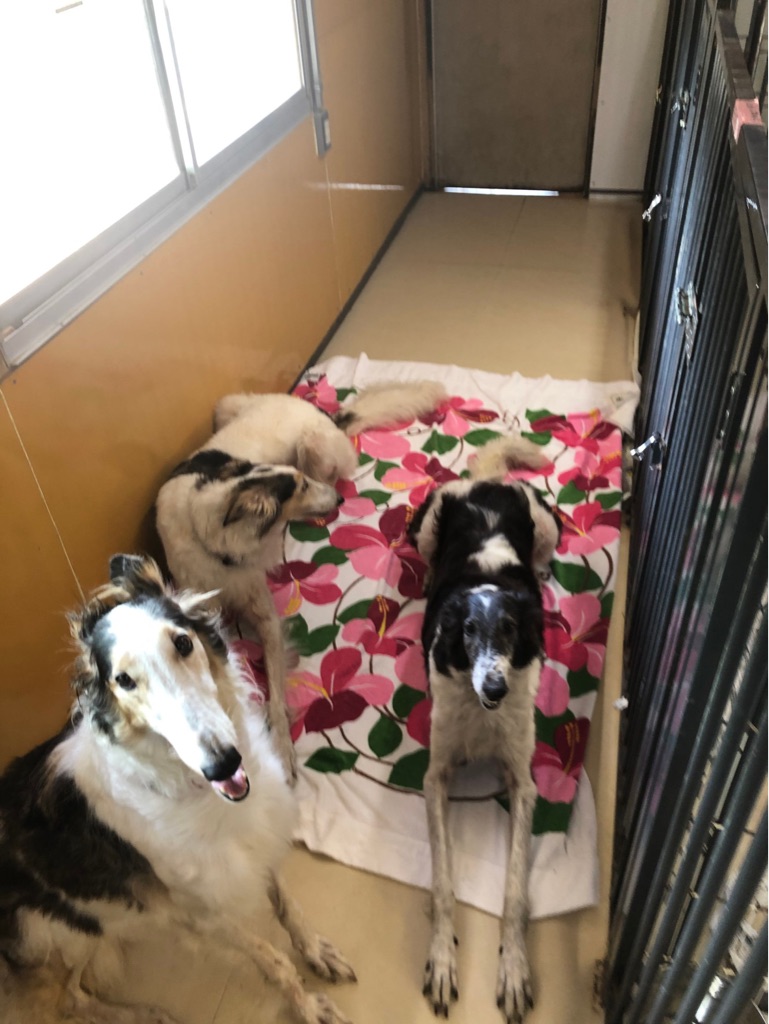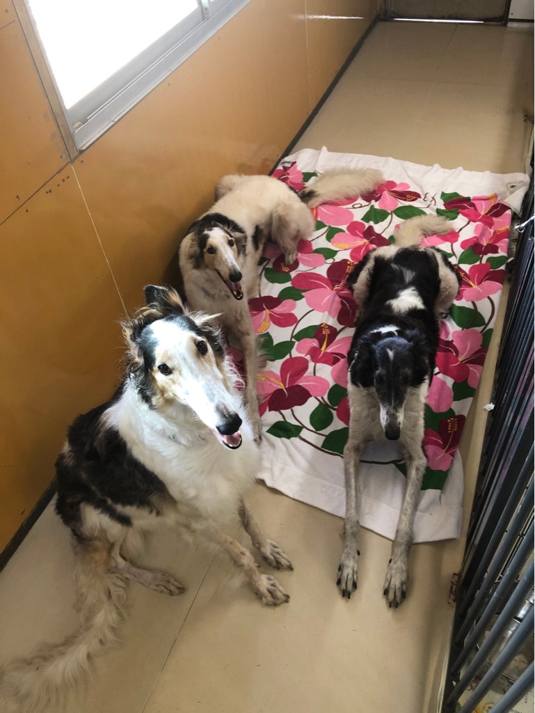 今はボルゾイ達もスタッフさん達に可愛がられ落ち着いて居ます、