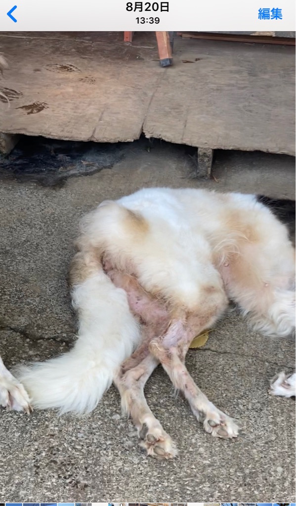 下は来たばかりの頃、皮膚がノミアレルギーで真っ赤でした。💦