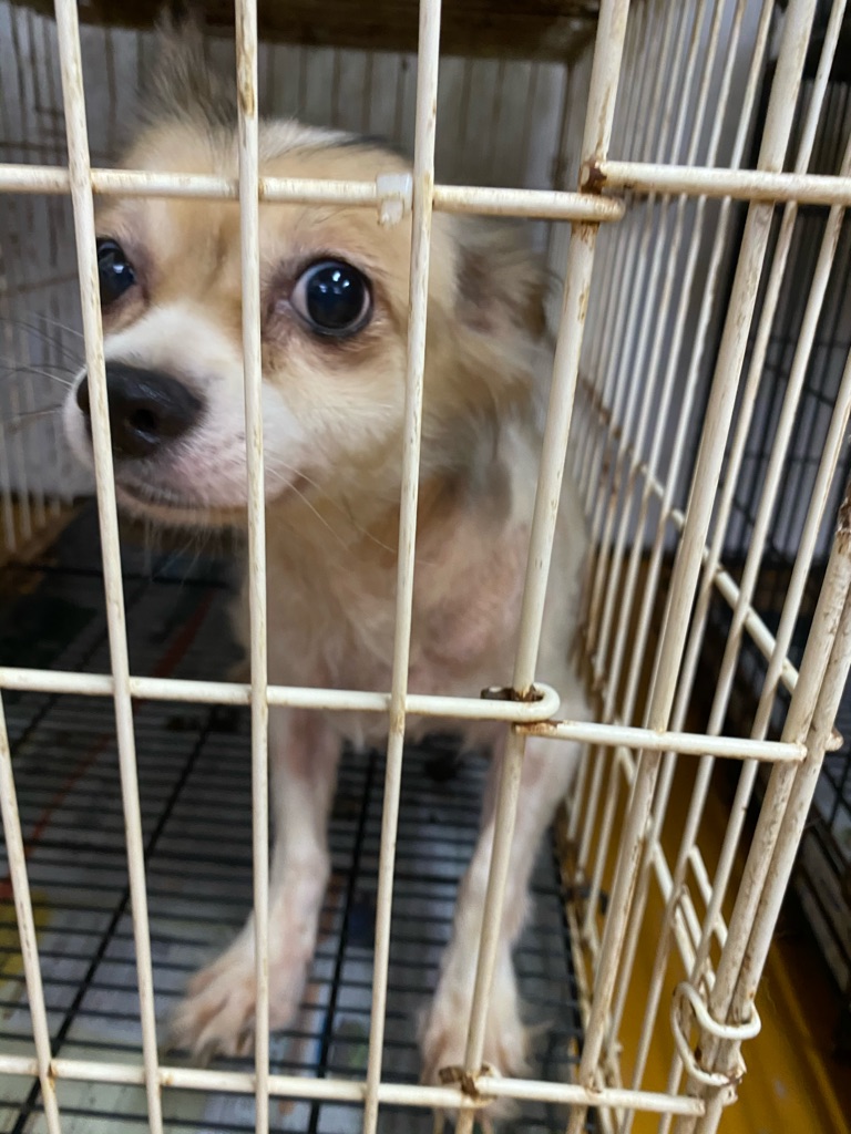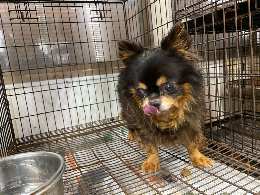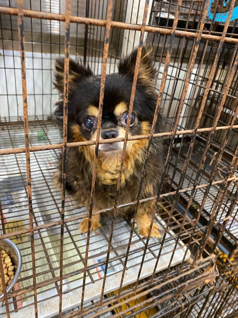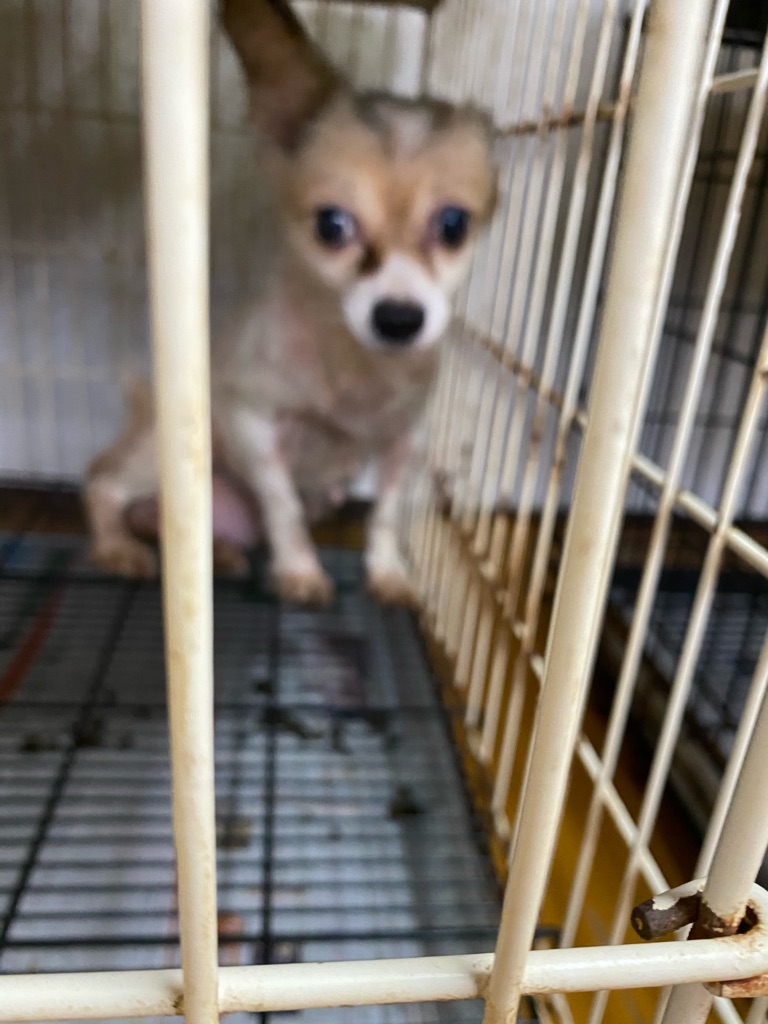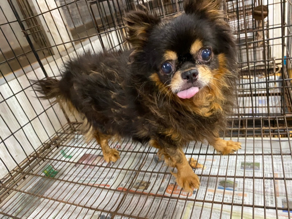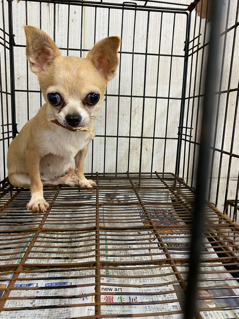 この老犬のチワワちゃんも 毛がカチカチに固まっています、酷い状態なので早めにトリミングしないと可哀想過ぎます。