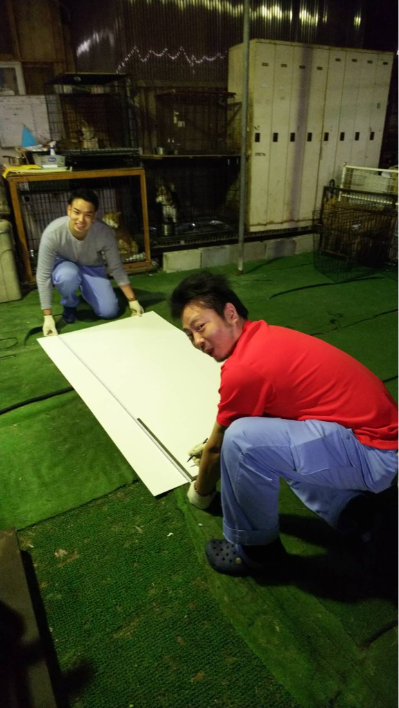 毎週土曜日に 屋根の修理や 壁貼りなどを受け持ってくれる ナイスガイのお2人😆🙏💕