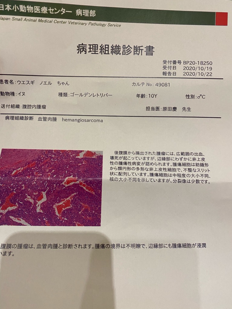 結果は血管肉腫が確定してしまいました。