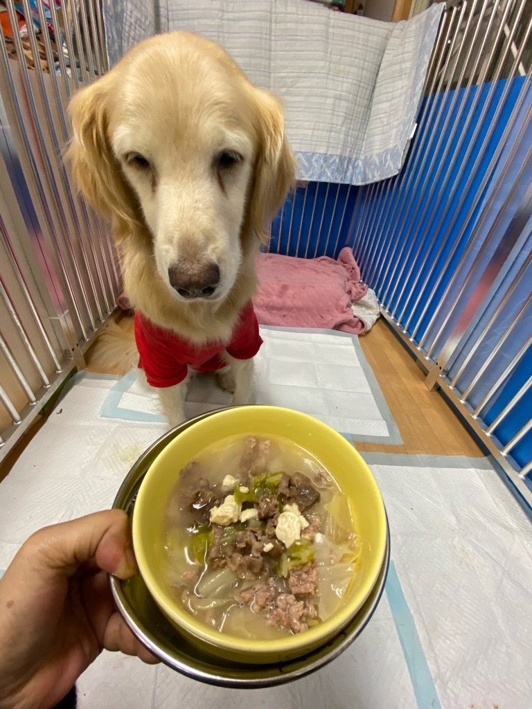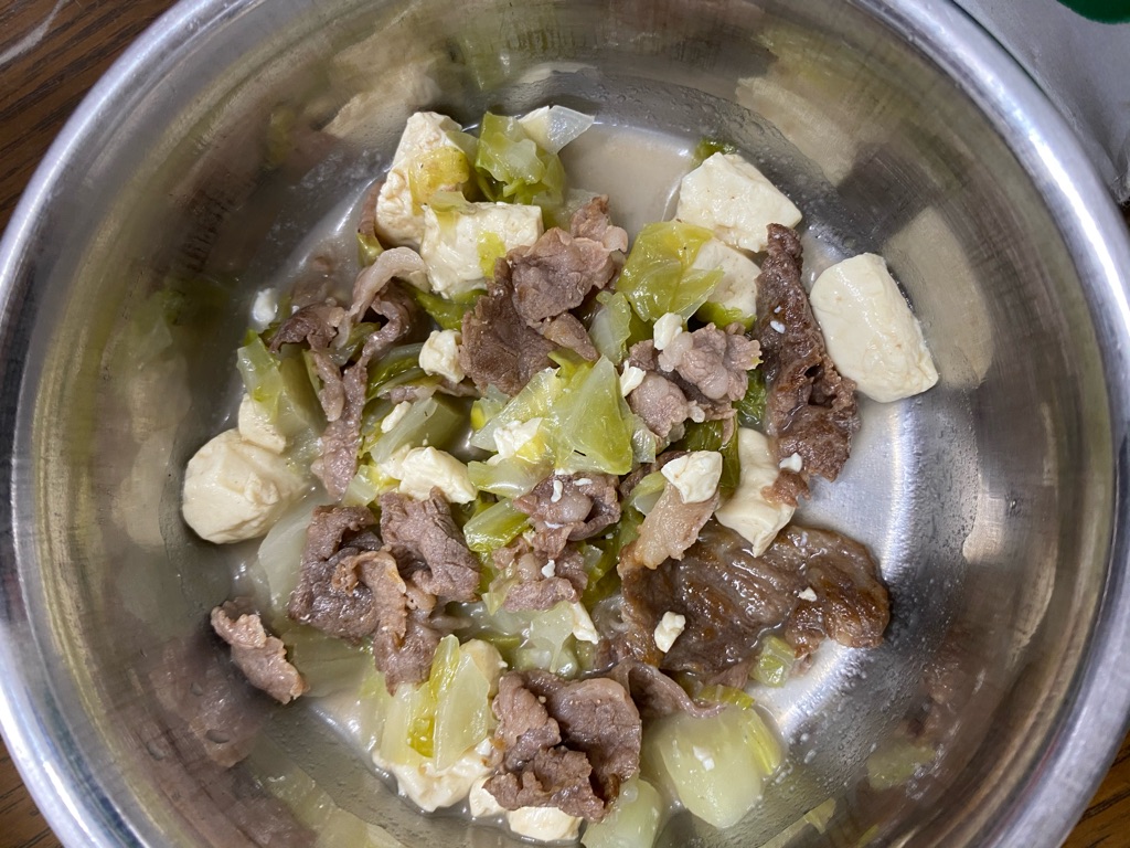 お肉野菜豆腐、サーモンオイル、水素水をプラスして、、、