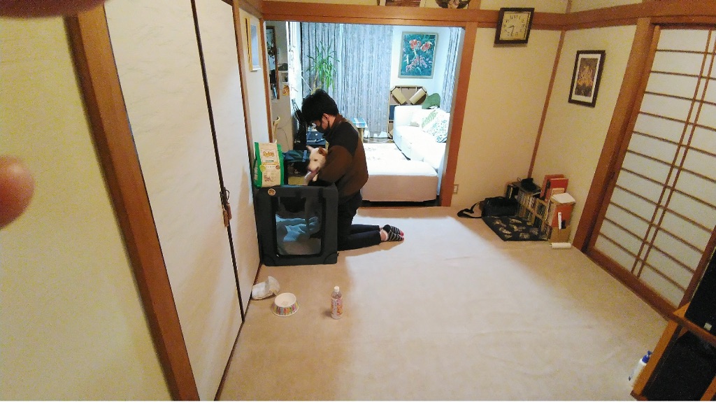 まだ緊張してケージの中の方が落ち着く様です。