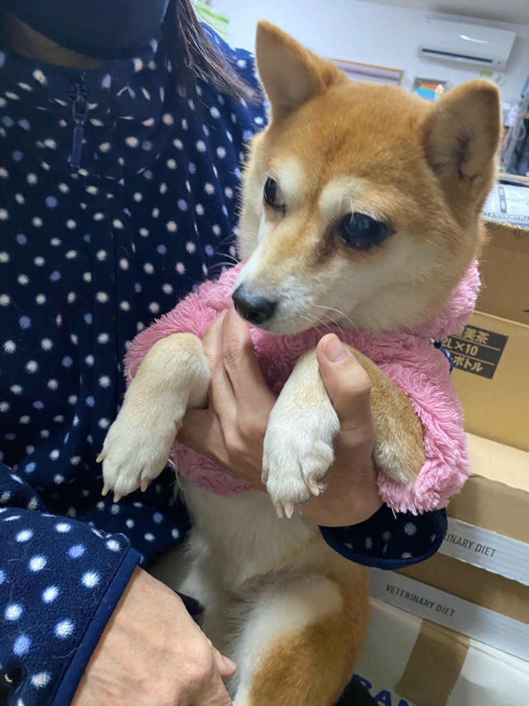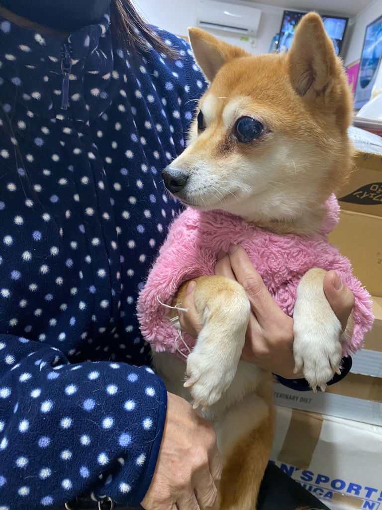 豆柴の豆乃ちゃん 片目が牛眼て 飛び出ています、近々手術になります。