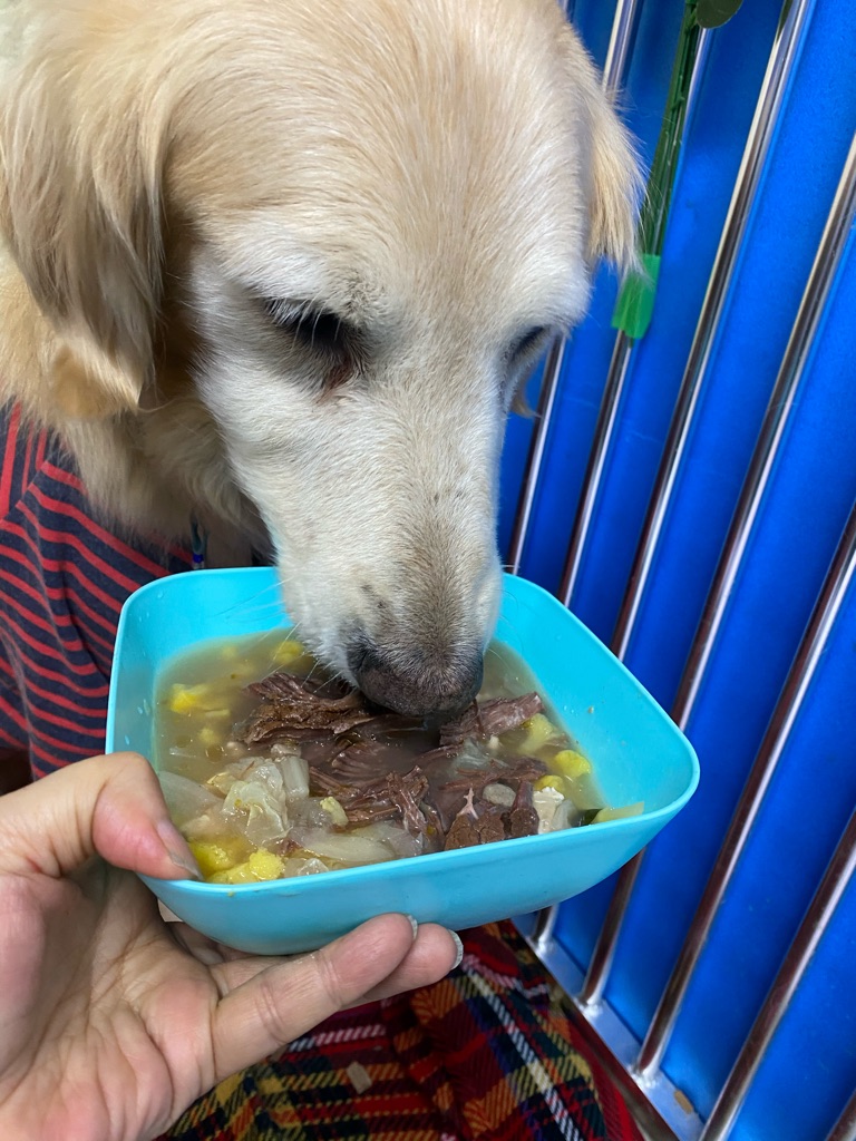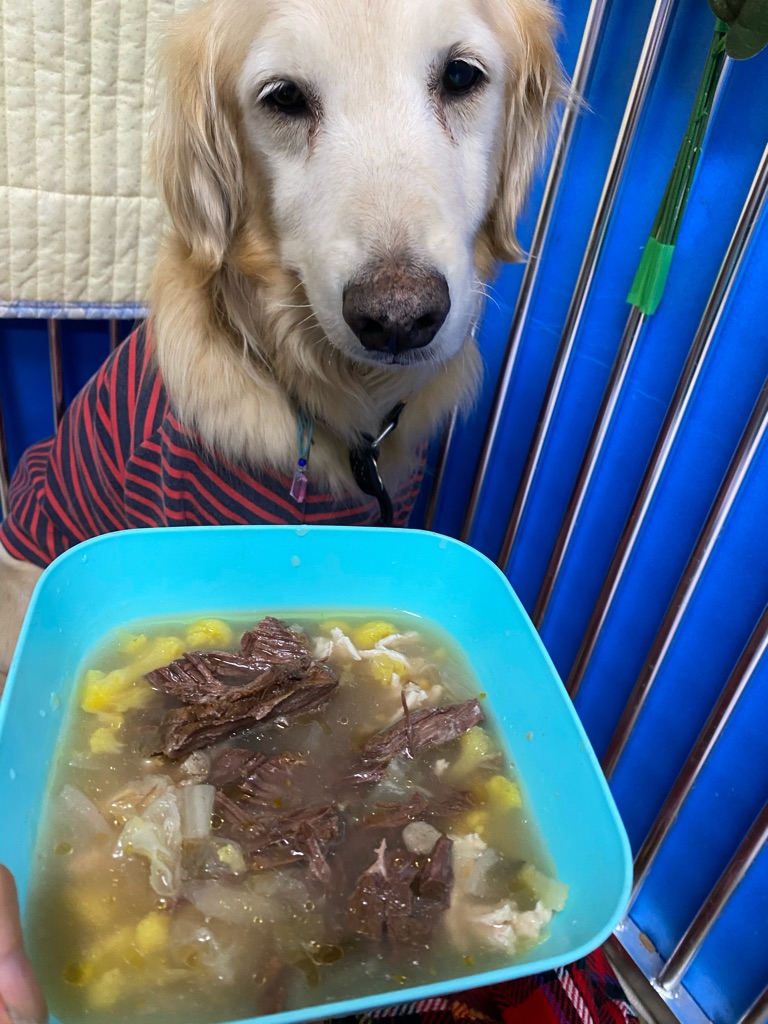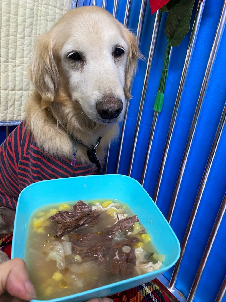 本日もお肉山盛り野菜スープ付き、