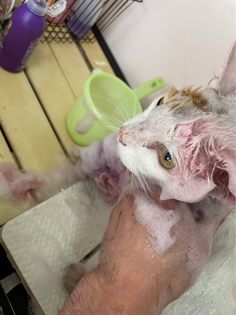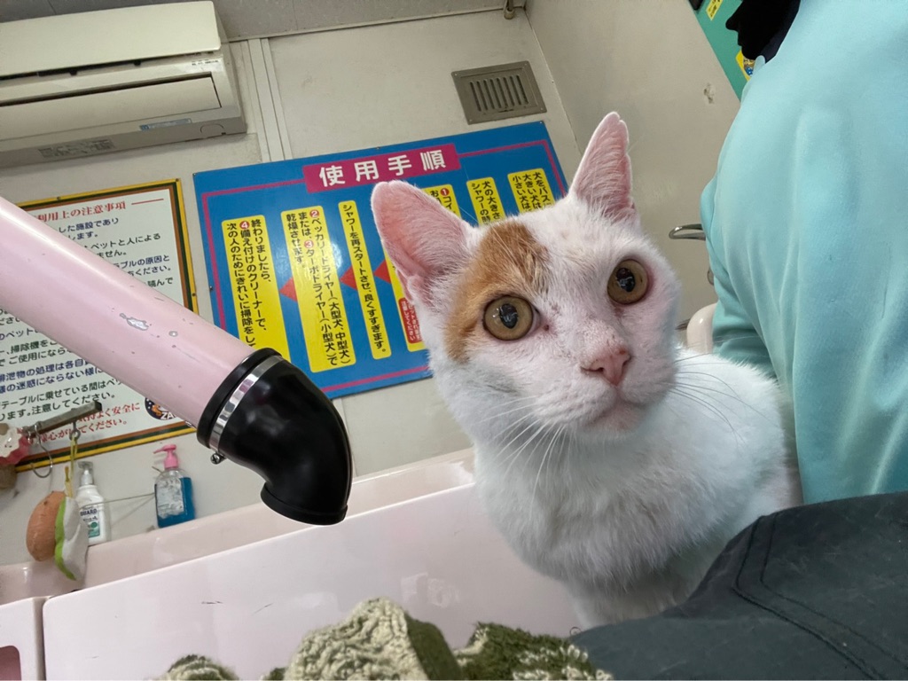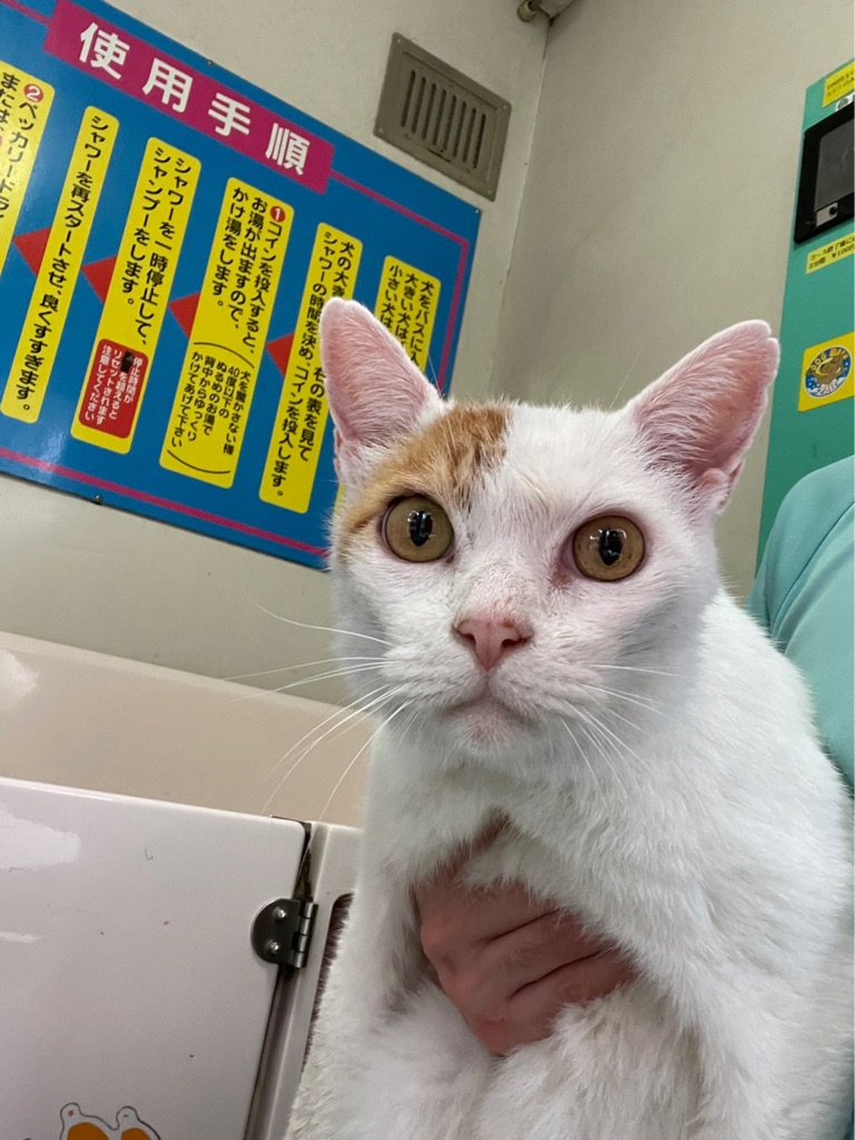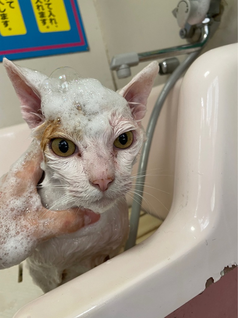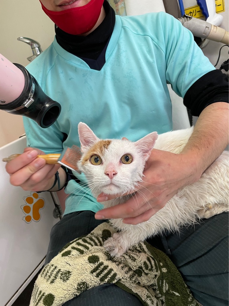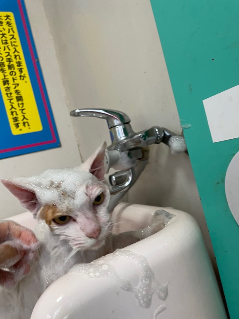 シェルターで早速シャンプーをしてもらいました、