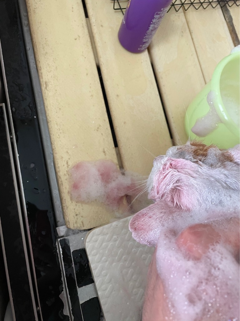 大人しく気持ち良さそうにシャンプーをして貰っています、