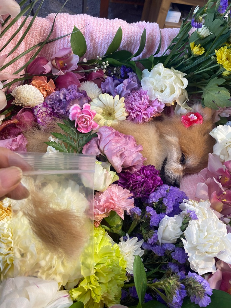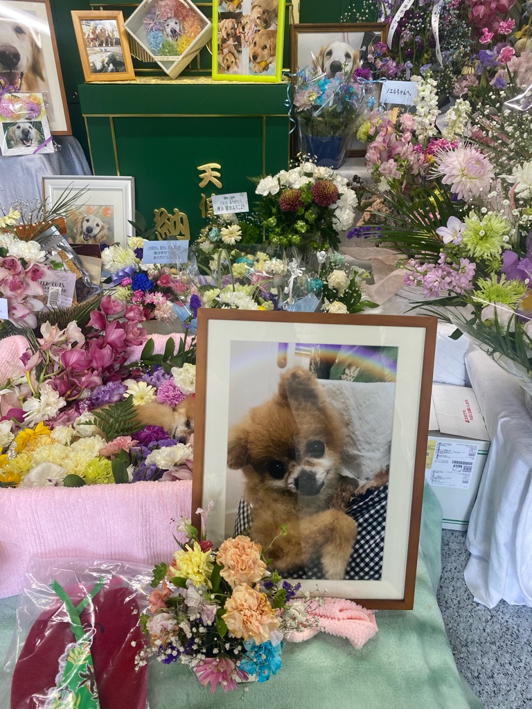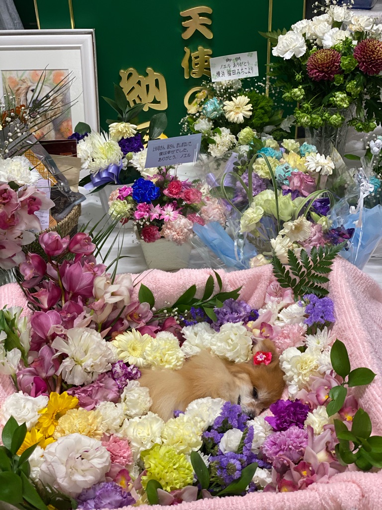 綺麗なお花に囲まれて 今日みんなで華子ちゃんのお別れ会を致します🙏💓🙏💓🙏