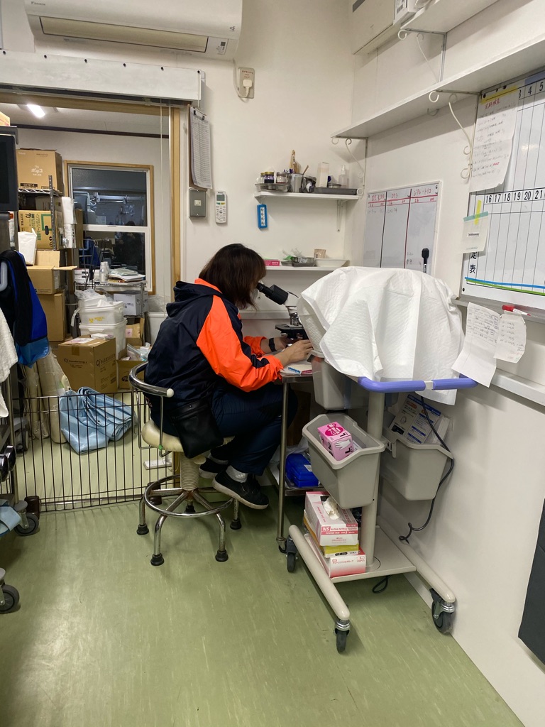 先生について 検便の勉強をしている看護師さん、熱心に勉強してくれています。🌸